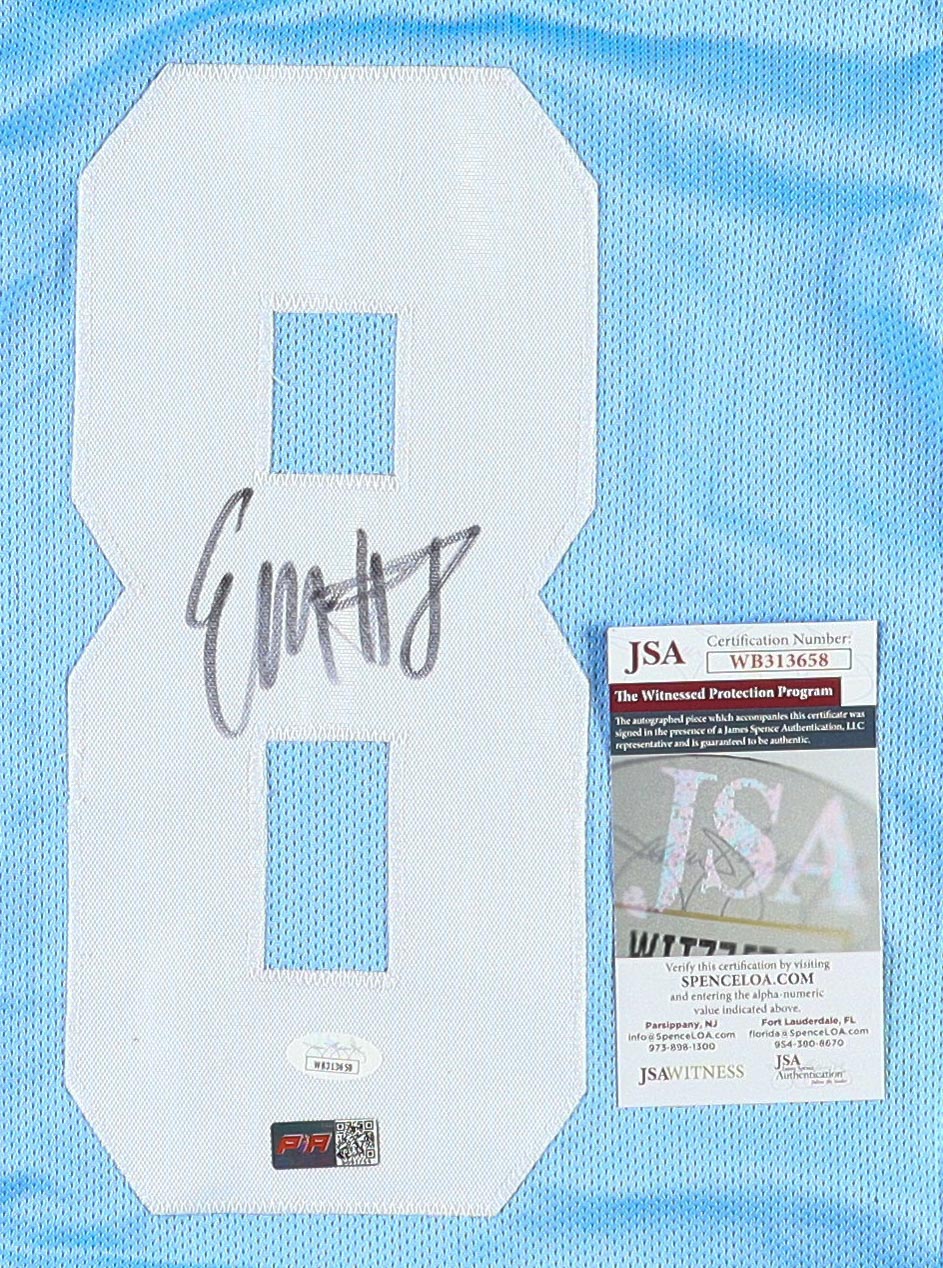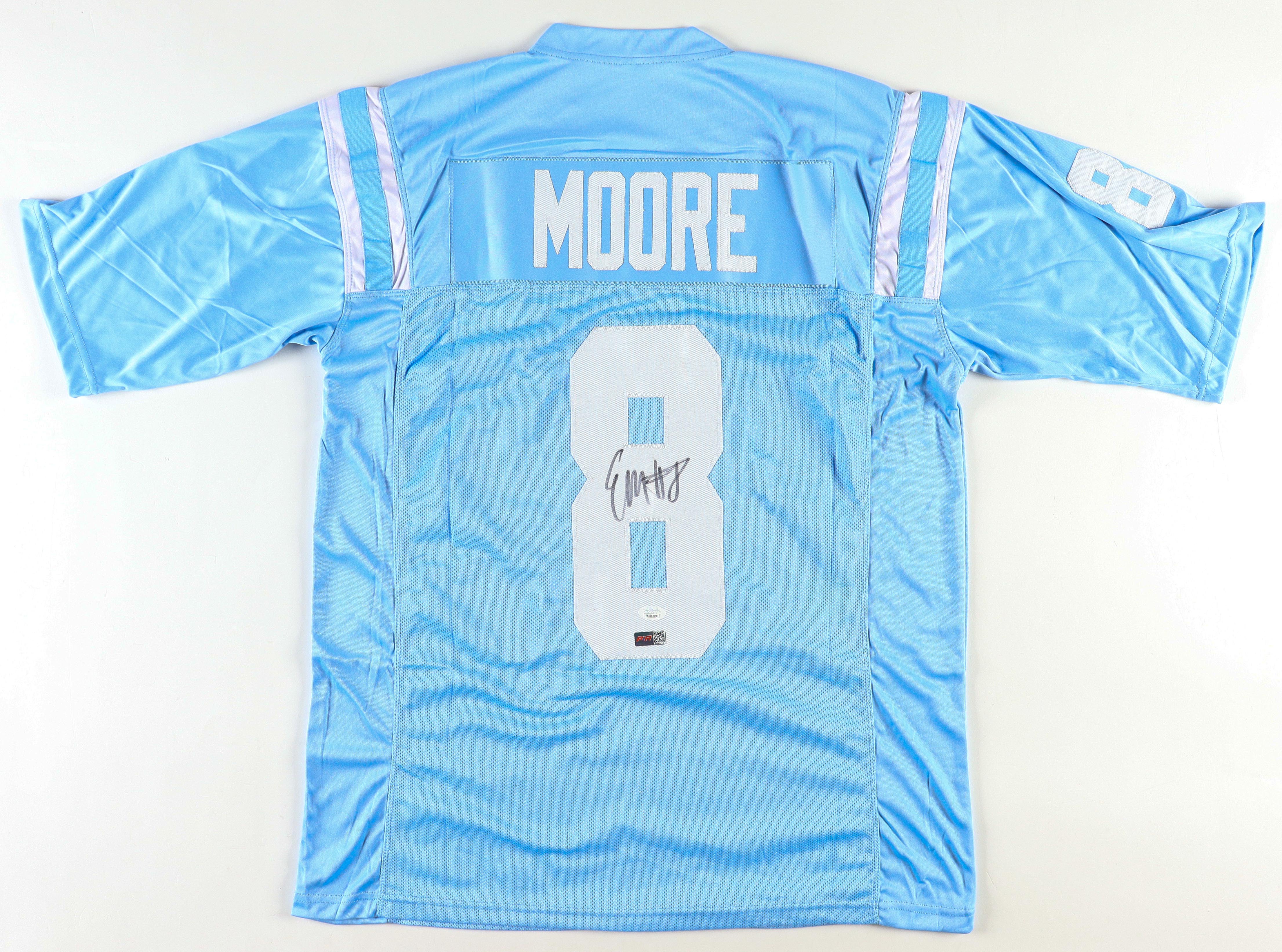Custom jersey. Everything sewn on, size XL. Hand-signed by Elijah Moore.
