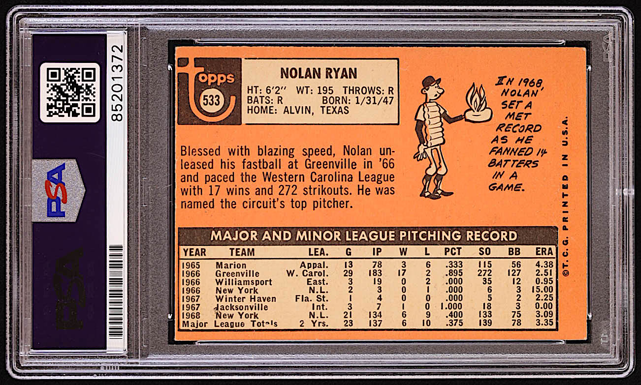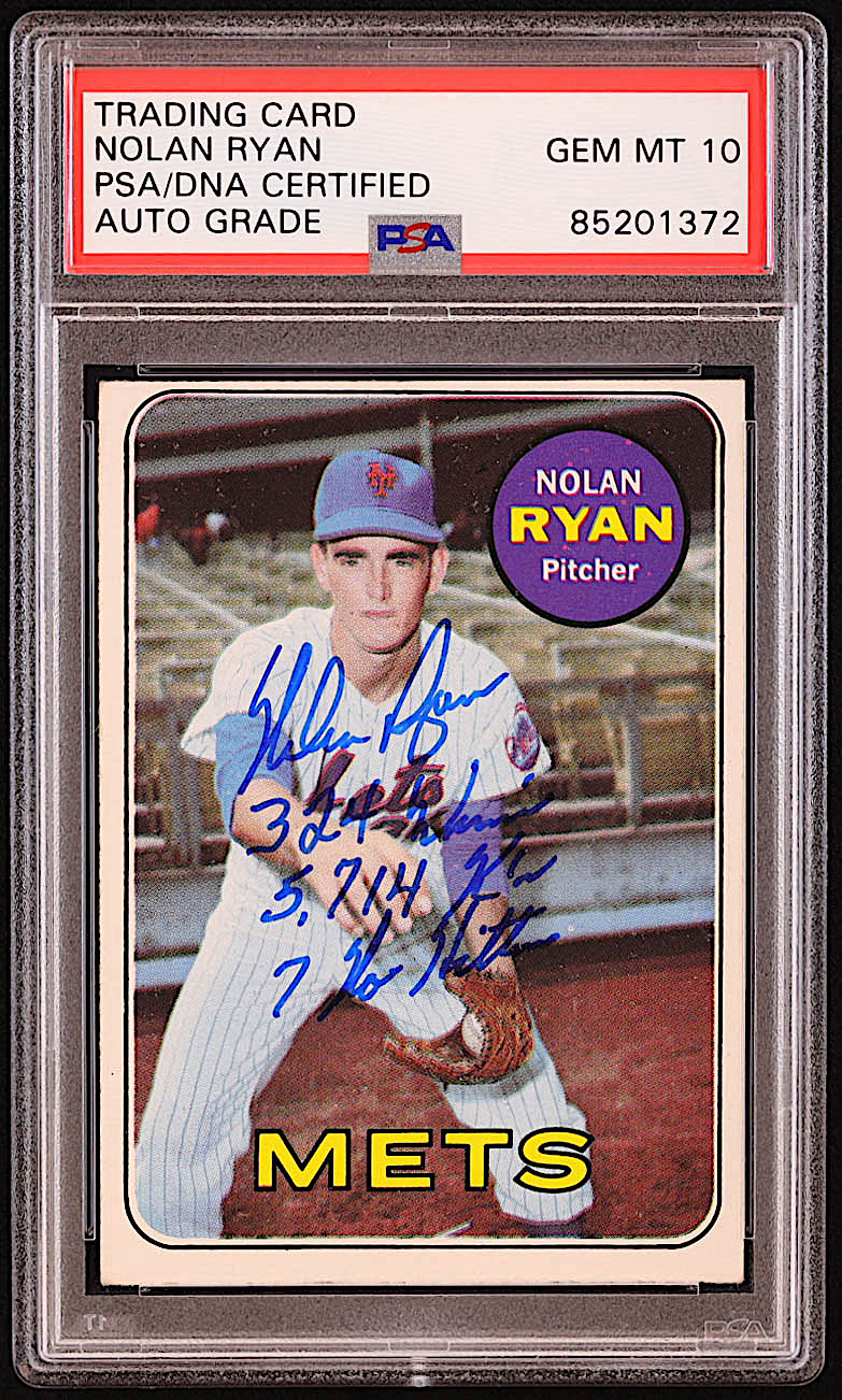 Nolan Ryan Signed 1969 Topps #533 with Multiple Inscriptions (PSA | Autograph Graded PSA 10)