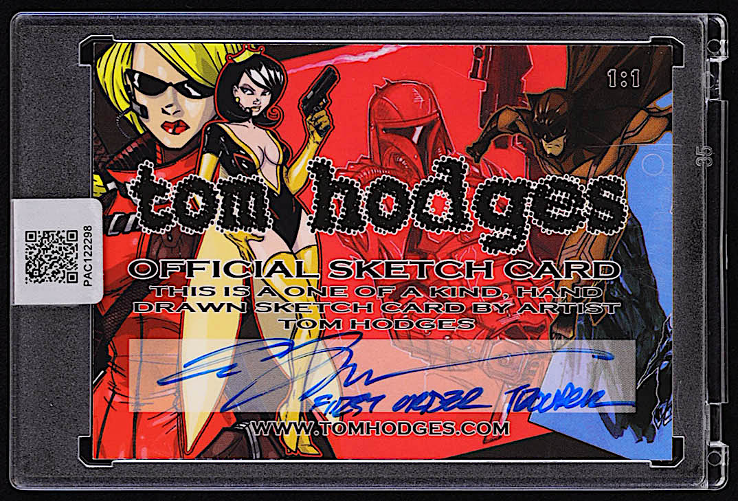This original sketch card includes original art by renowned comic book artist, Tom Hodges. Also includes a character name inscription on the back by the artist.