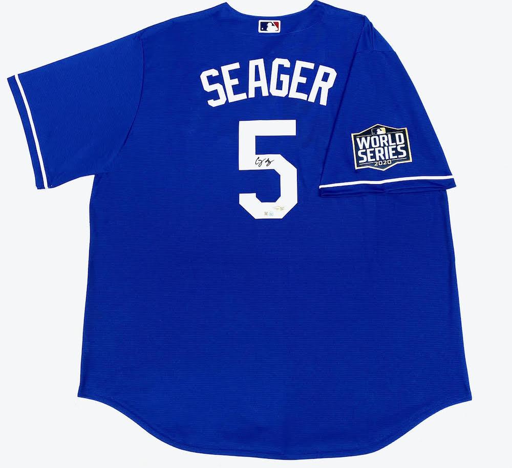 Corey Seager Signed Dodgers Jersey with 2020 World Series Champion Patch (Fanatics & MLB)