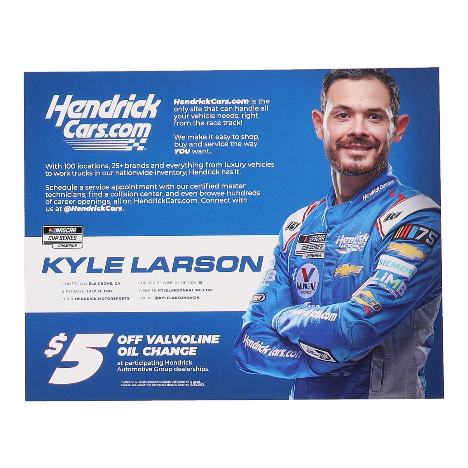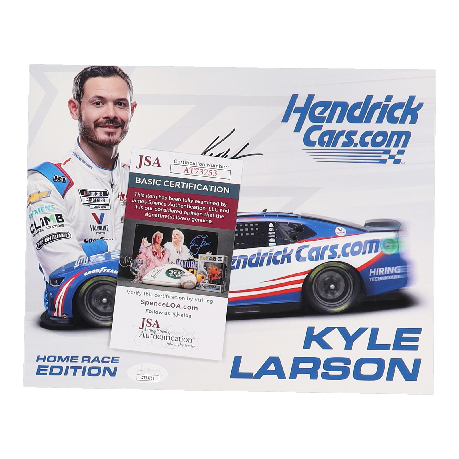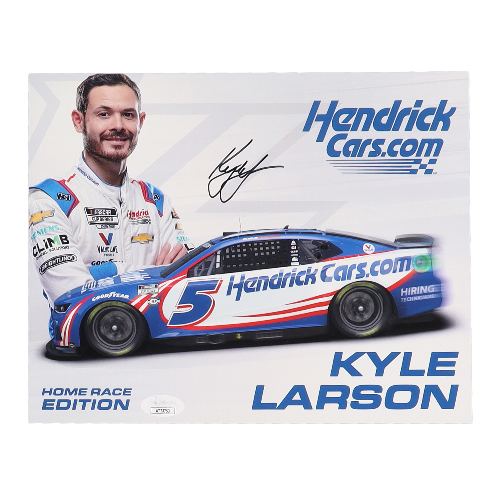 Photo measures 8" x 10" in size and has been hand-signed by Kyle Larson.