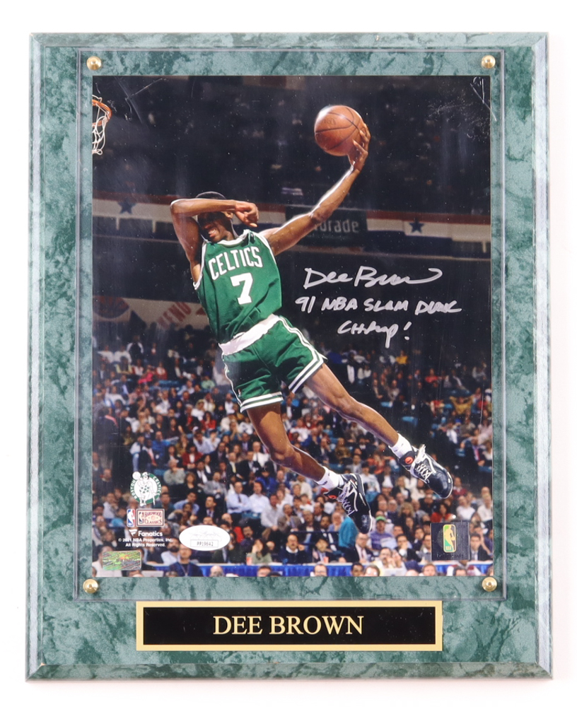 Dee Brown Signed Celtics Photo Plaque Inscribed "91 NBA Slam Dunk Champ!" (JSA & Palm Beach)