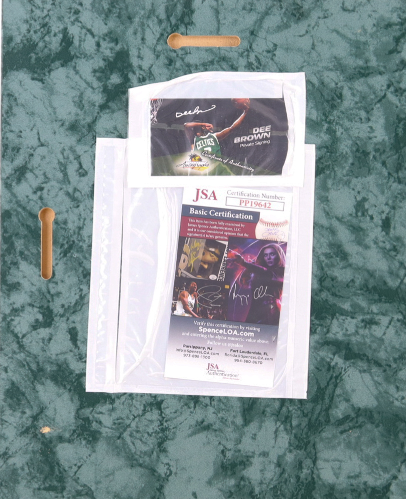 Photo plaque measures approximately 10.5" x 13.5". The plaque features a photo that has been hand-signed and inscribed by Dee Brown (Boston Celtics).