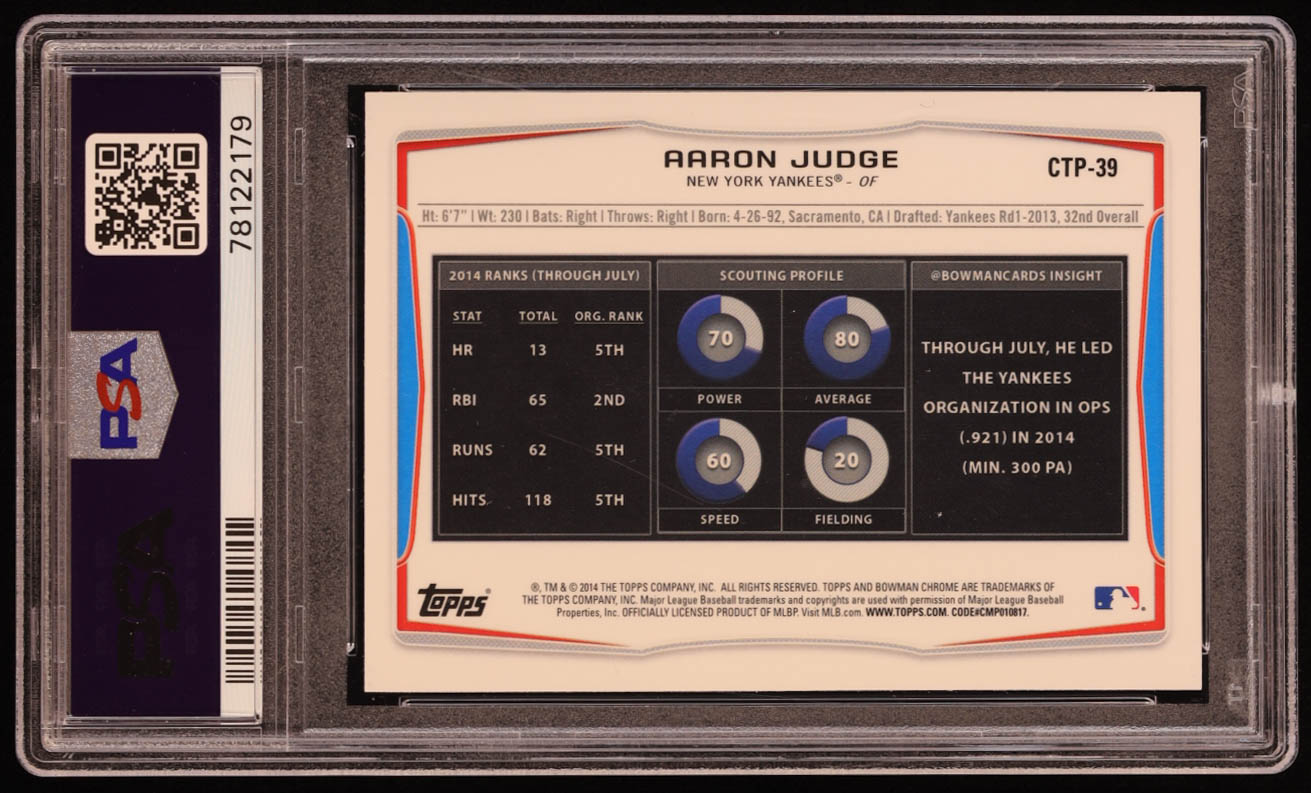 Aaron Judge 2014 Bowman Chrome Draft Top Prospects #CTP39 RC (PSA 10)