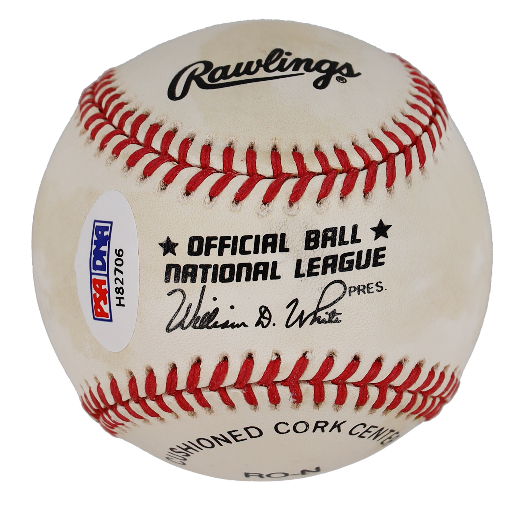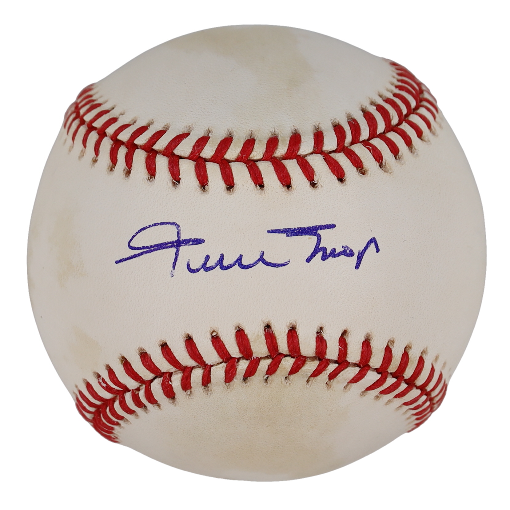 Rawlings Official National League baseball. Hand-signed by Willie Mays (San Francisco Giants, HOF). Please note, the baseball is naturally toned.