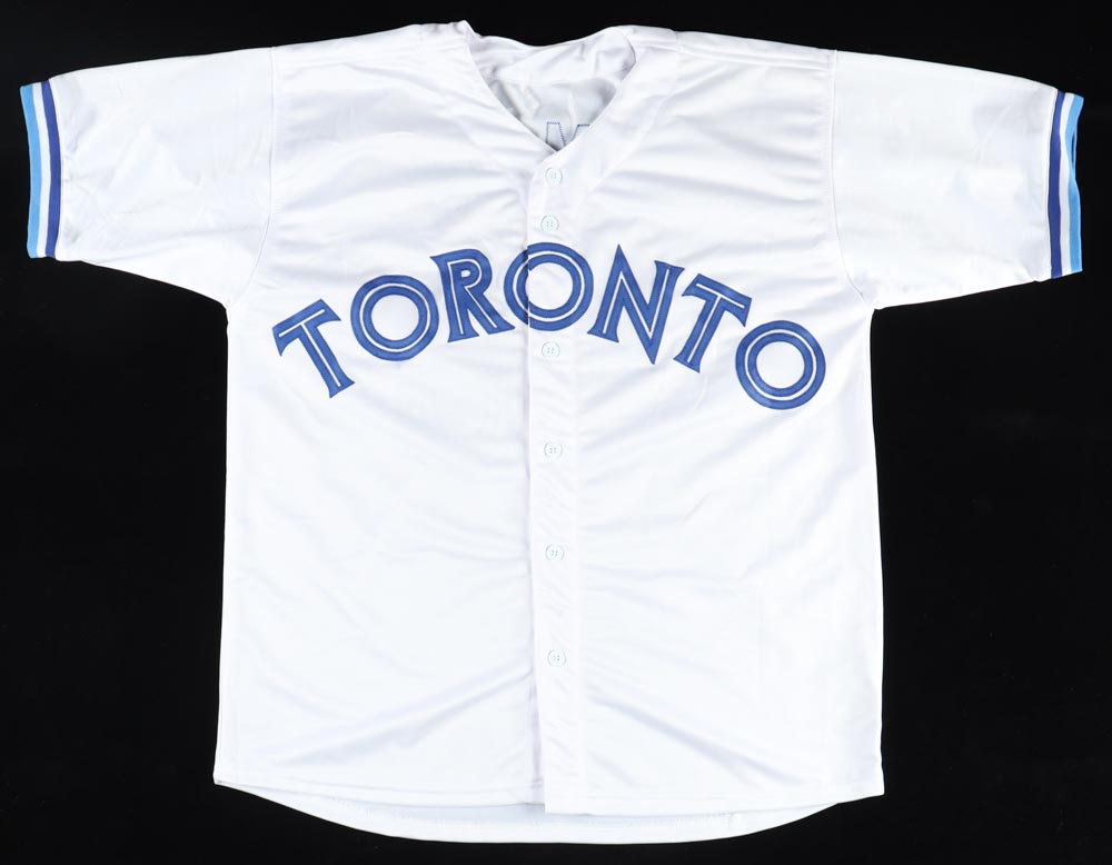 Custom jersey with everything sewn on, size XL. Has been hand-signed and inscribed by Mike Timlin (Toronto Blue Jays).