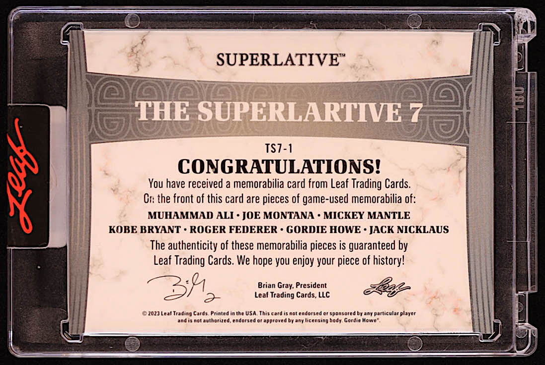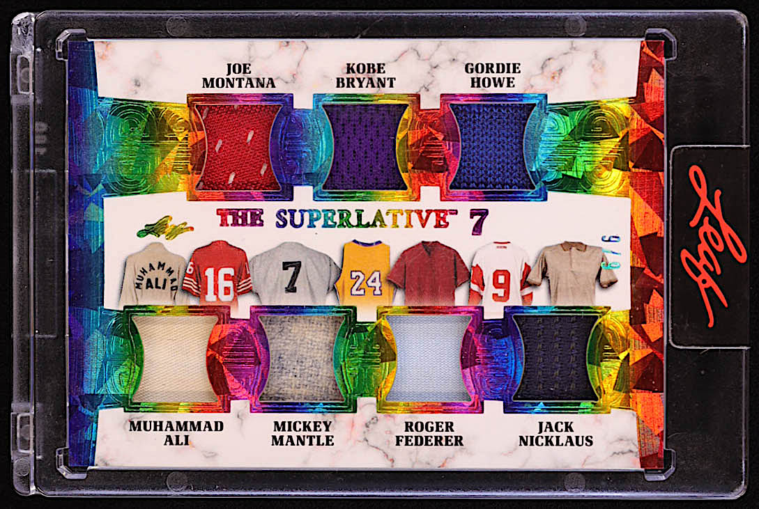 Joe Montana / Kobe Bryant / Gordie Howe / Muhammad Ali / Mickey Mantle / Roger Federer / Jack Nicklaus 2023 Leaf The Superlative 7 Rainbow Crystal #TS71 #9/9