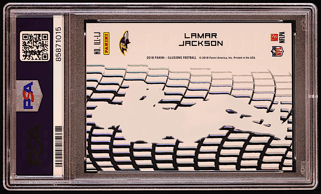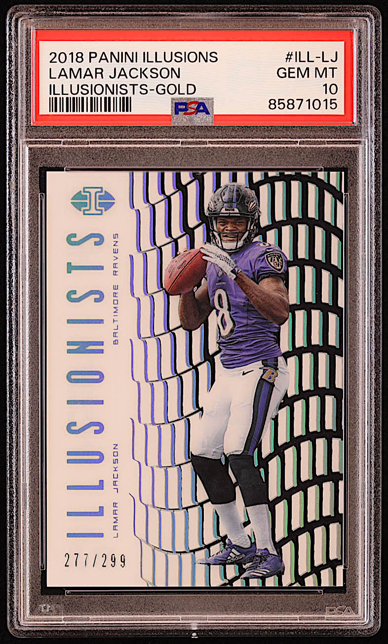 Lamar Jackson 2018 Panini Illusions Illusionists Gold #10 RC #277/299 (PSA 10)
