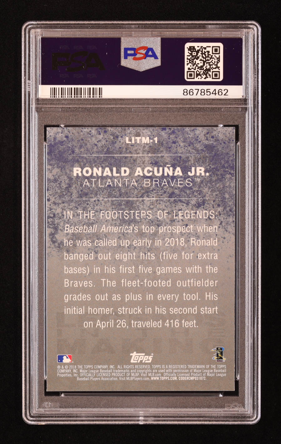 Ronald Acuna Jr. 2018 Topps Update Legends in the Making #LITM1 RC (PSA 10)