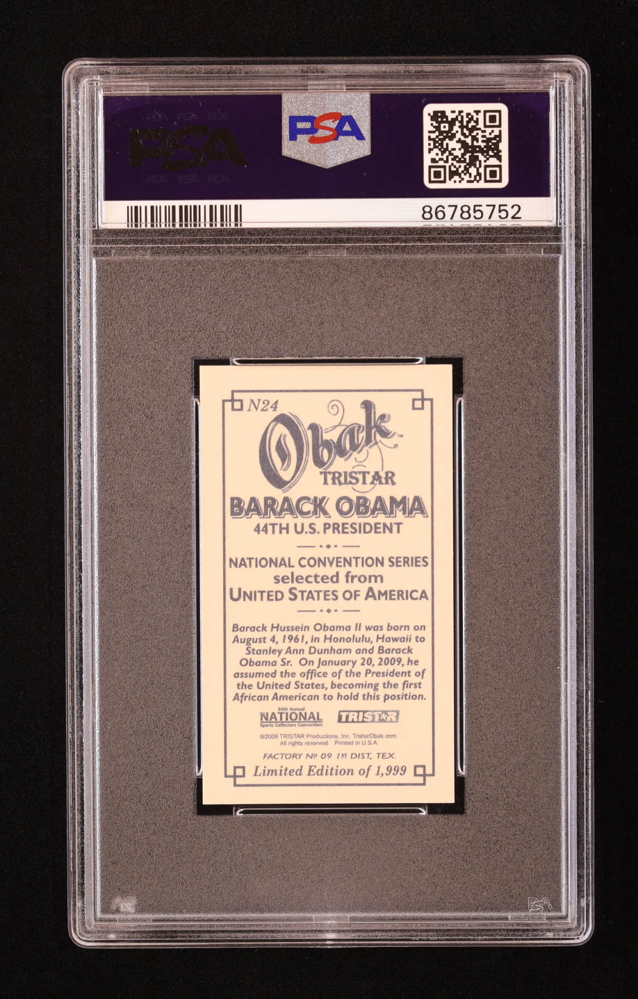 Barack Obama 2009 TRISTAR Obak National Convention Mini Promo #N24 (PSA 10)
