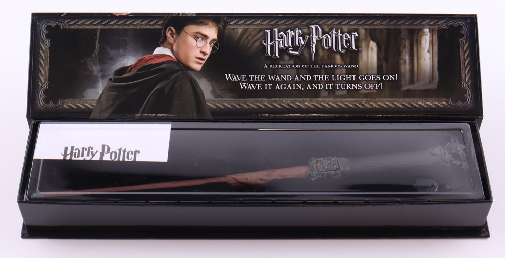 Toy wand has been hand-signed on the top of the original packaging by Daniel Radcliffe.