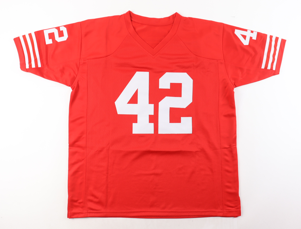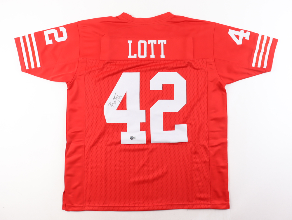 Custom jersey with everything sewn on., size XL. Hand-signed by Ronnie Lott.