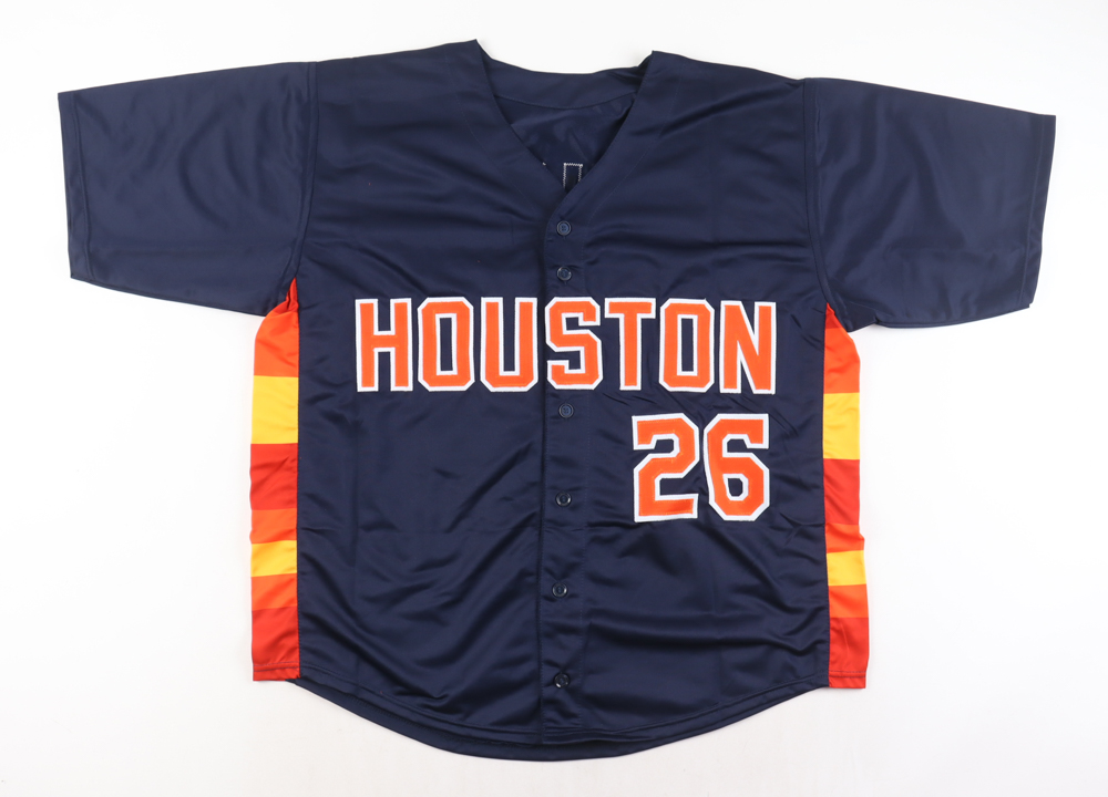 Custom jersey. Everything is sewn on, size XL. Hand-signed by Jose Siri.