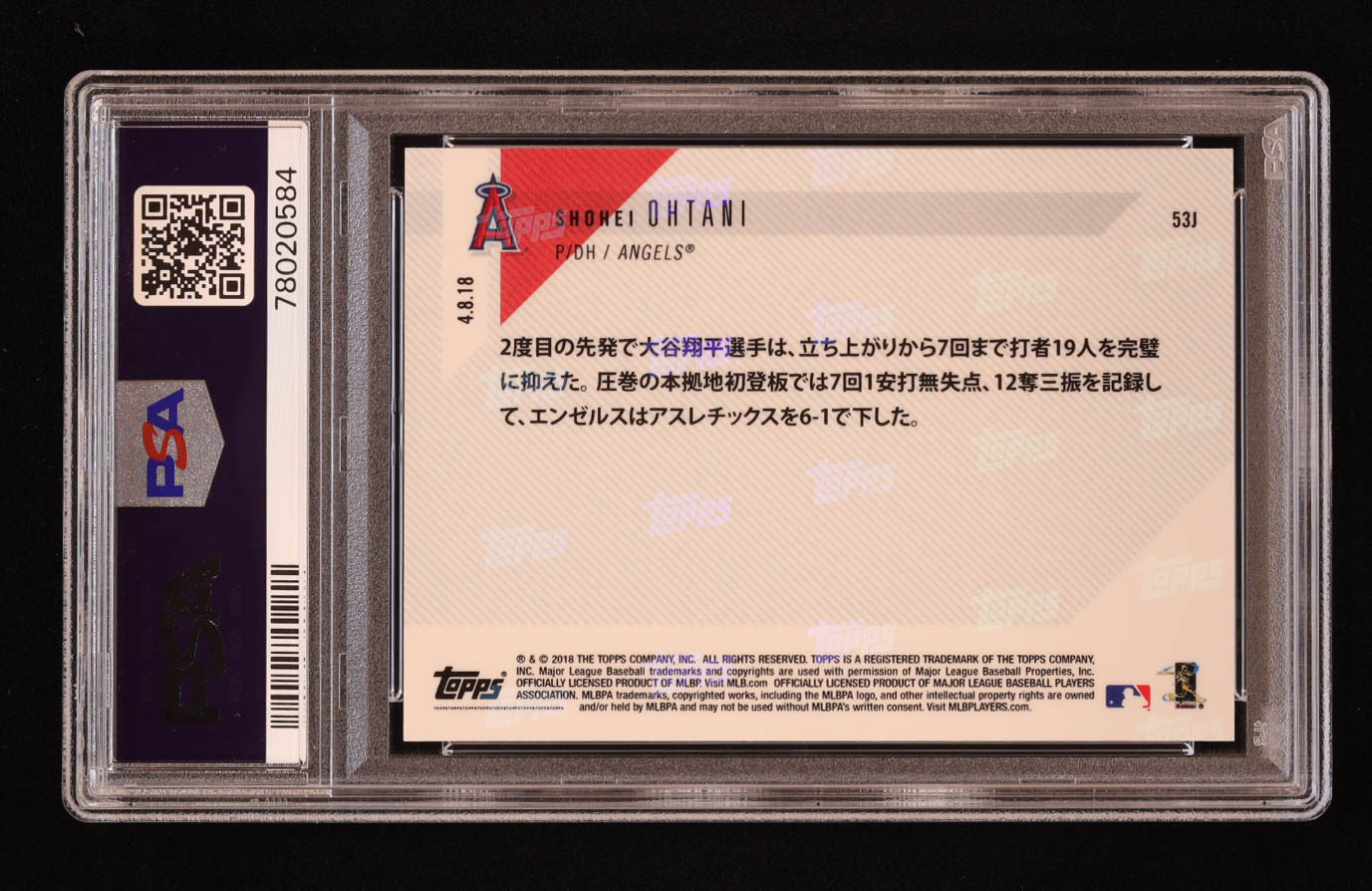 Shohei Ohtani 2018 Topps Now #53J Japanese RC (PSA 10)