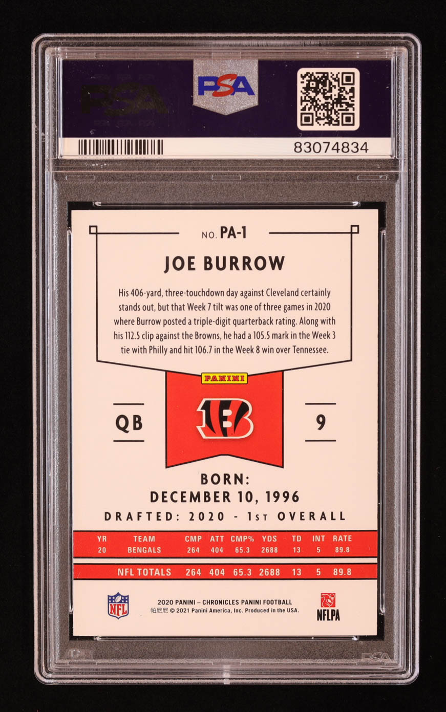Joe Burrow 2020 Panini #1 RC (PSA 10)