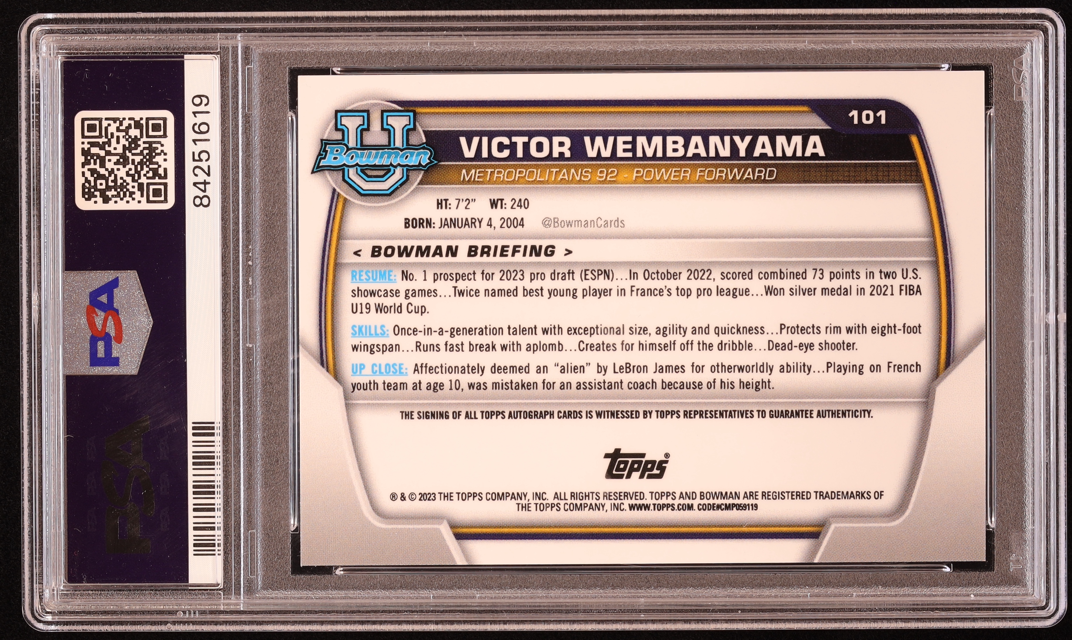 Victor Wembanyama 2022-23 Bowman Chrome University Prospect Autographs #101 (PSA 9 | Autograph Graded 10)