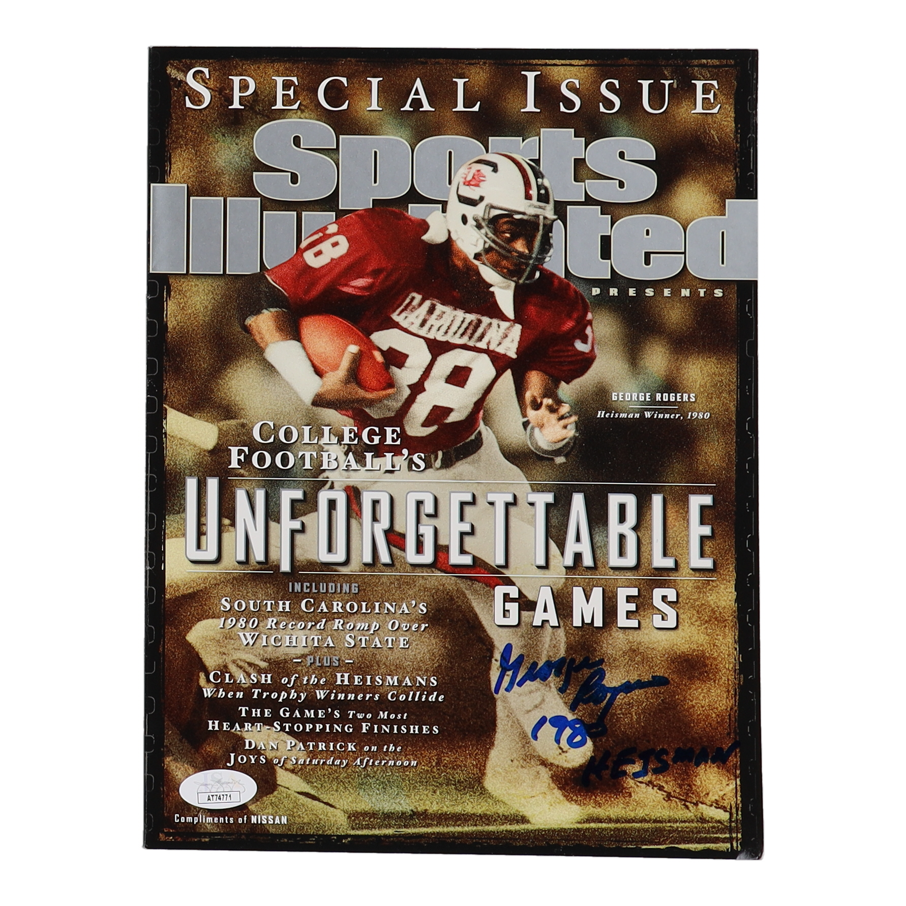 Magazine has been hand-signed and inscribed by George Rogers (South Carolina Gamecocks).