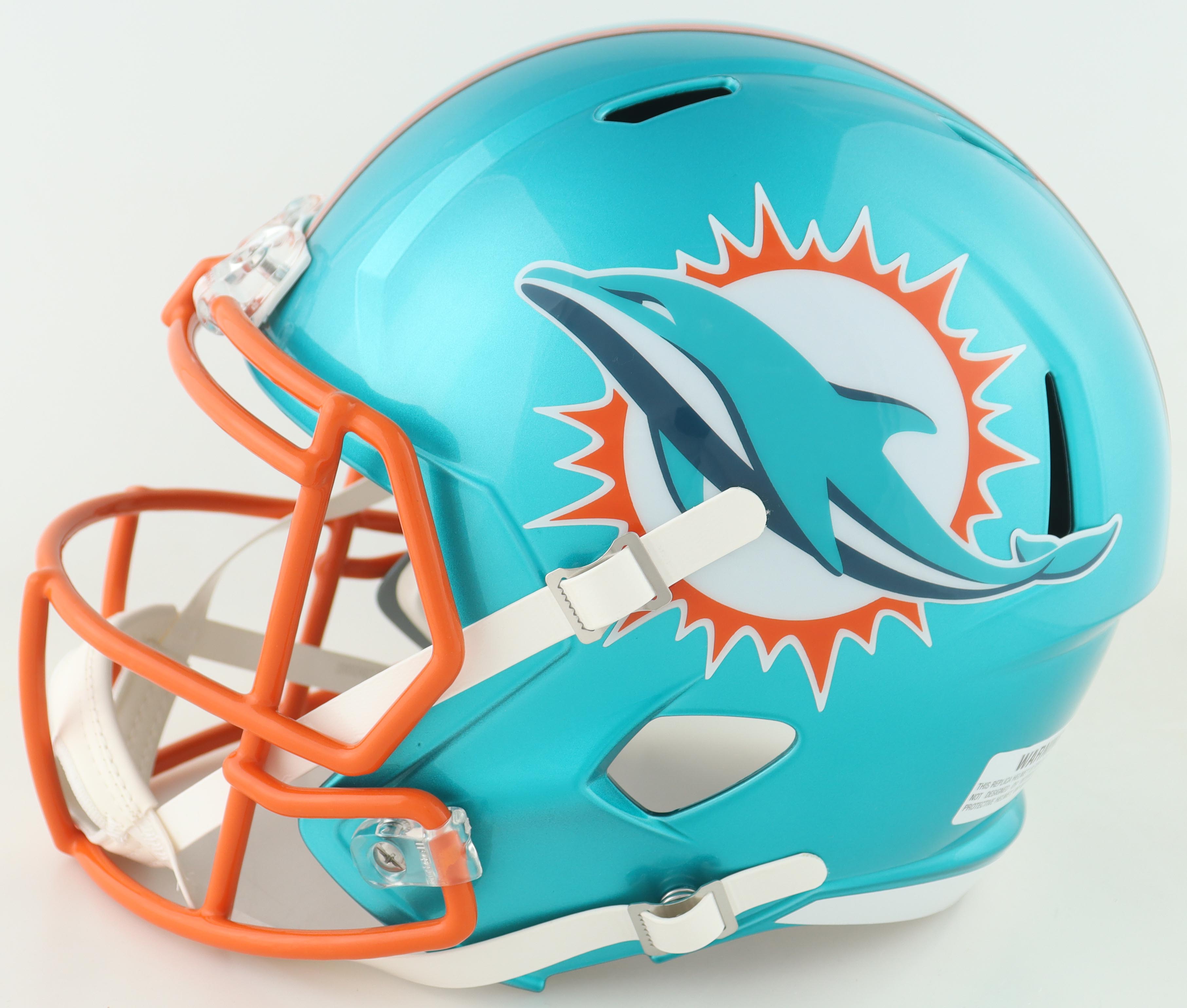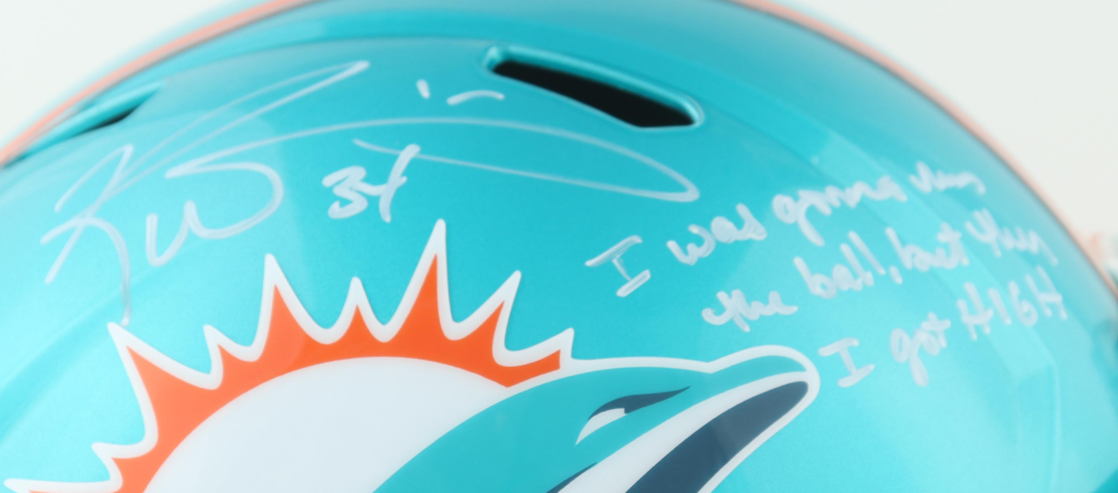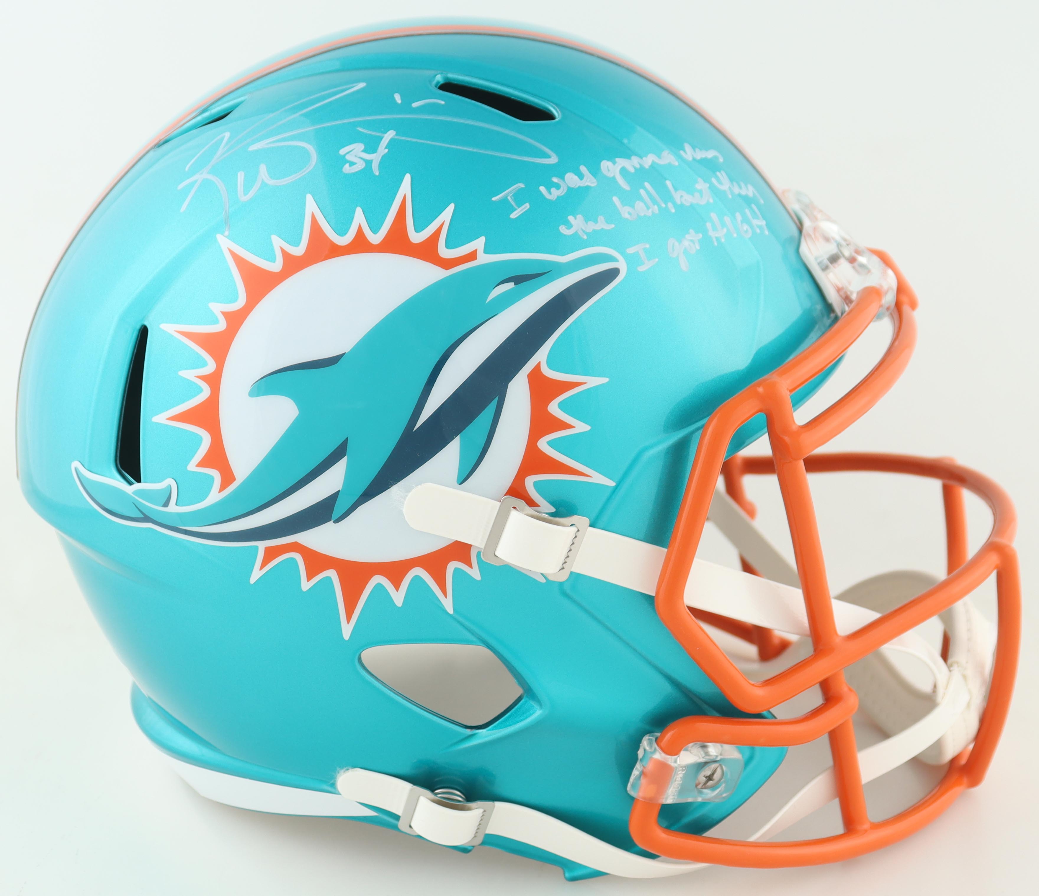 Riddell Miami Dolphins full-size Replica Flash Alternate Speed helmet. Hand-signed and inscribed by Ricky Williams.