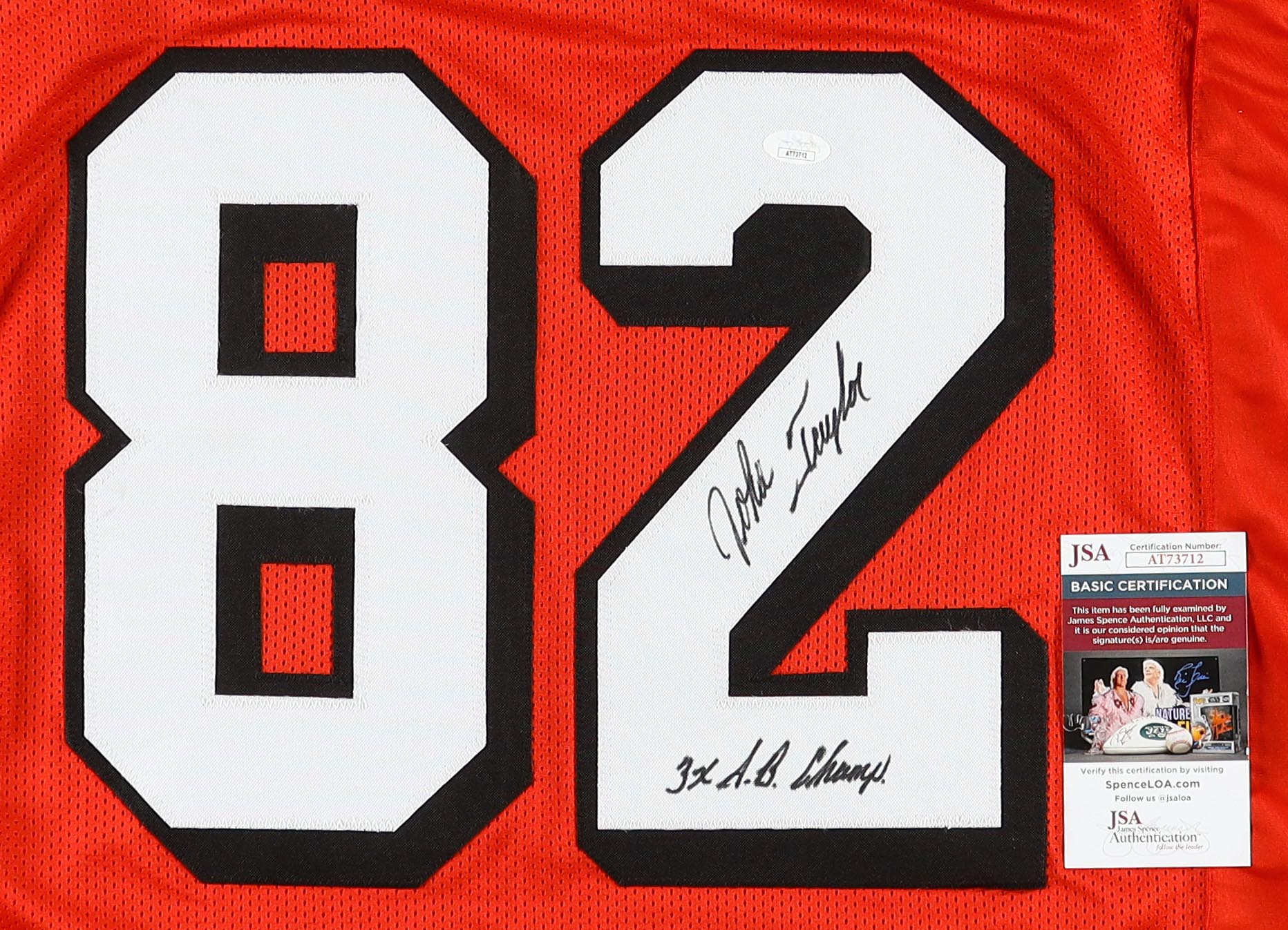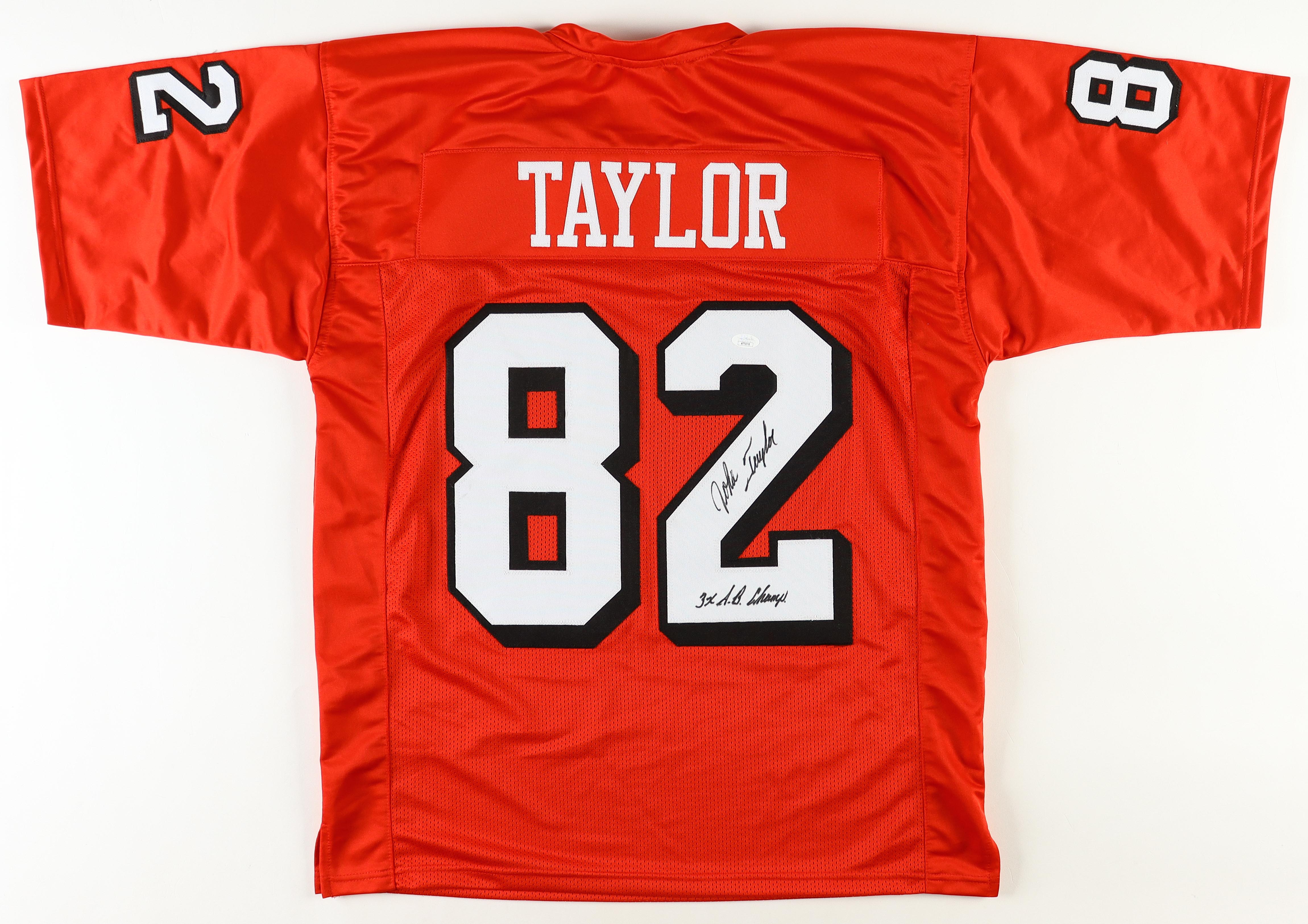 Custom jersey. Everything sewn on, size XL. Hand-signed and inscribed by John Taylor.