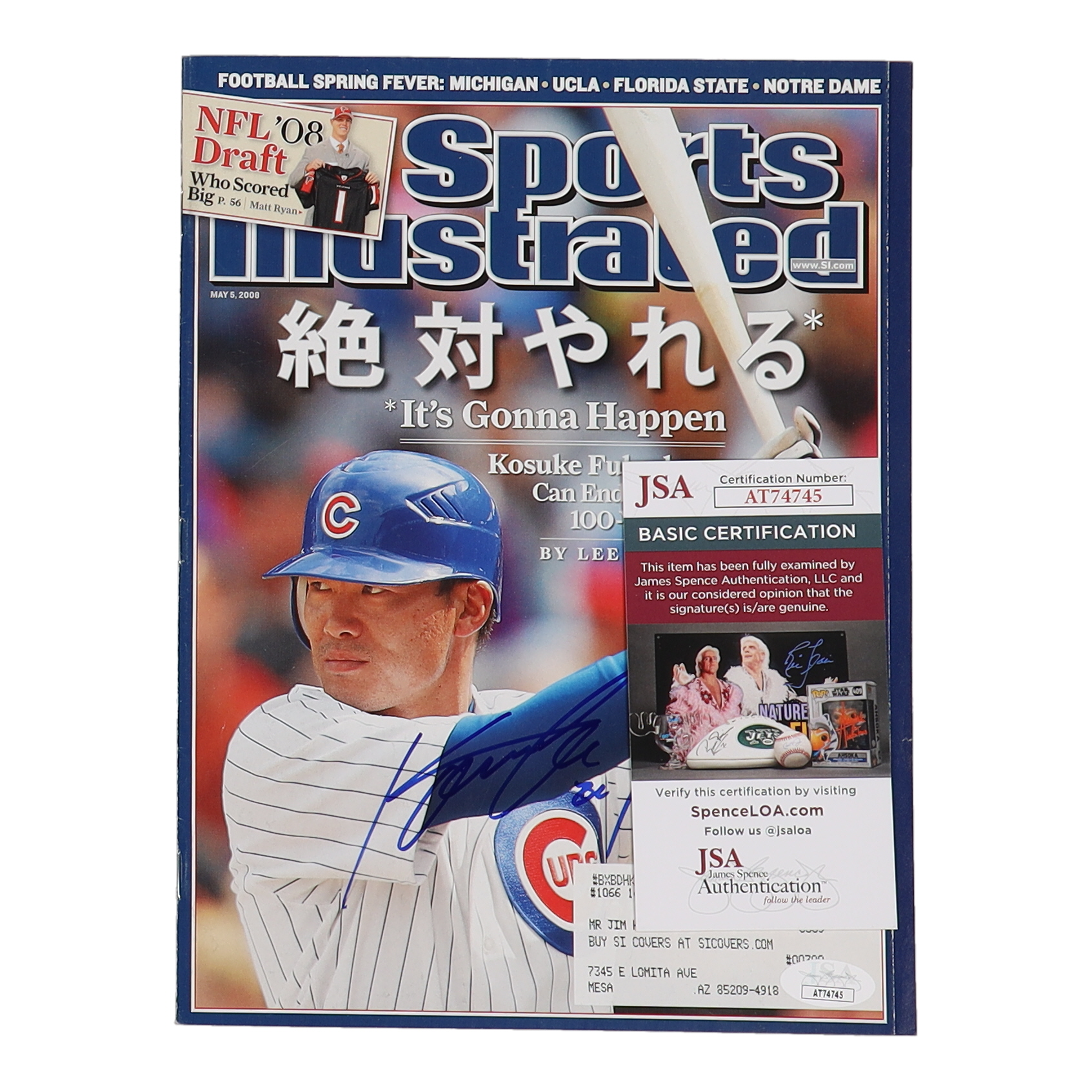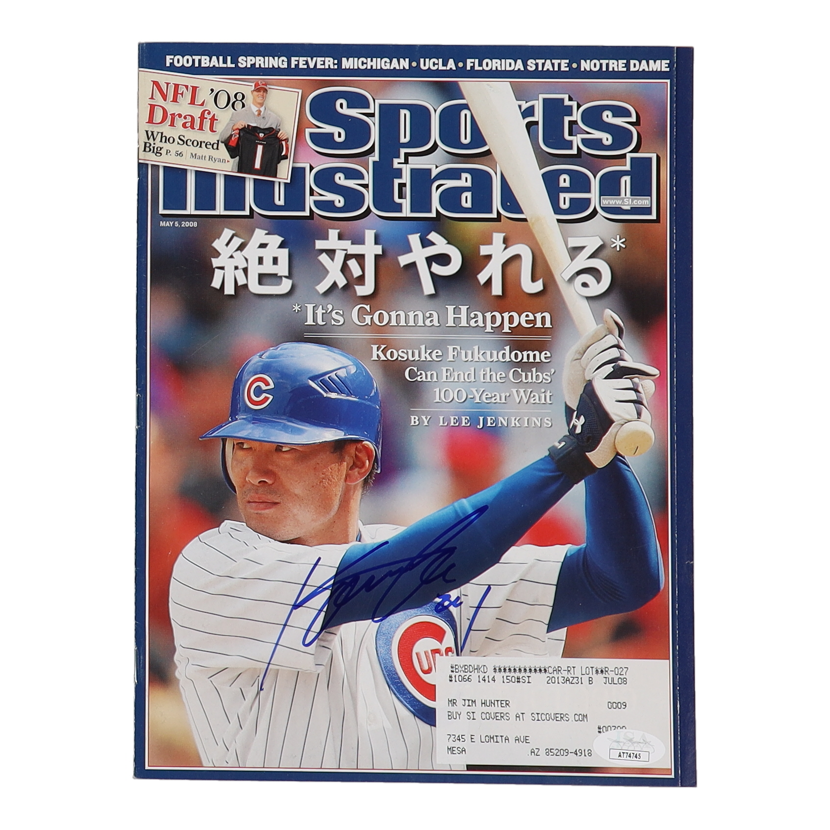 Magazine dated May 5, 2008 has been hand-signed by Kosuke Fukudome (Chicago Cubs).