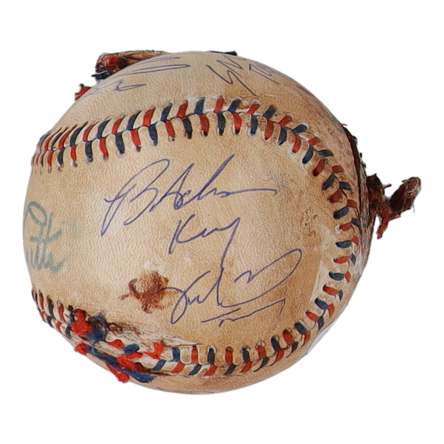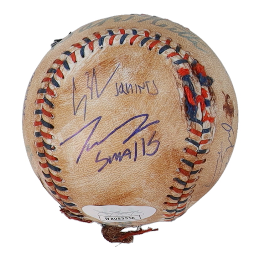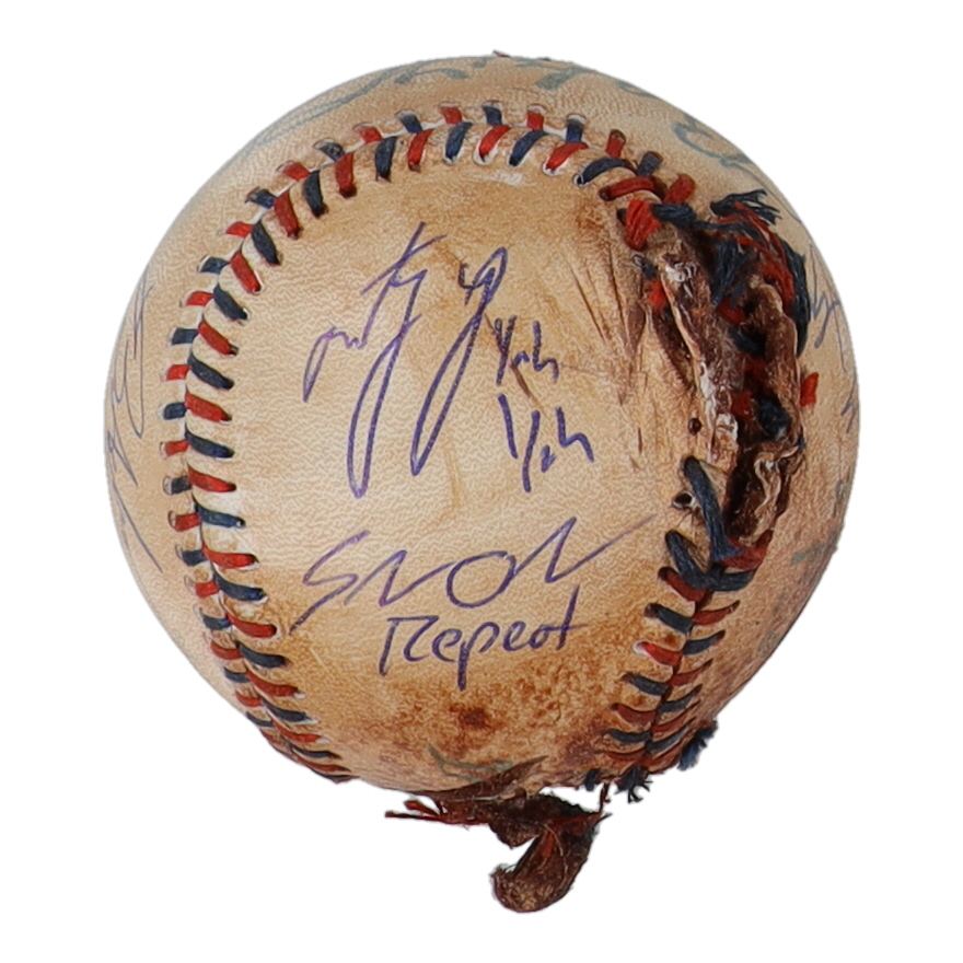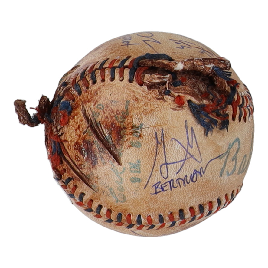 "The Sandlot" replica baseball has been cast-signed by (7) members from "The Sandlot". Signers on the baseball include Tom Guiry (Scotty Smalls), Shane Obedzinski (Tommy "Repeat" Timmons), Marty York (Alan "Yeah-Yeah" McClennan), Victor Di Mattia (Timmy Timmons), Grant Gelt (Bertram Grover) and Brandon Adams (Kenny DeNunez), and Chauncey Leopardi (Squints).