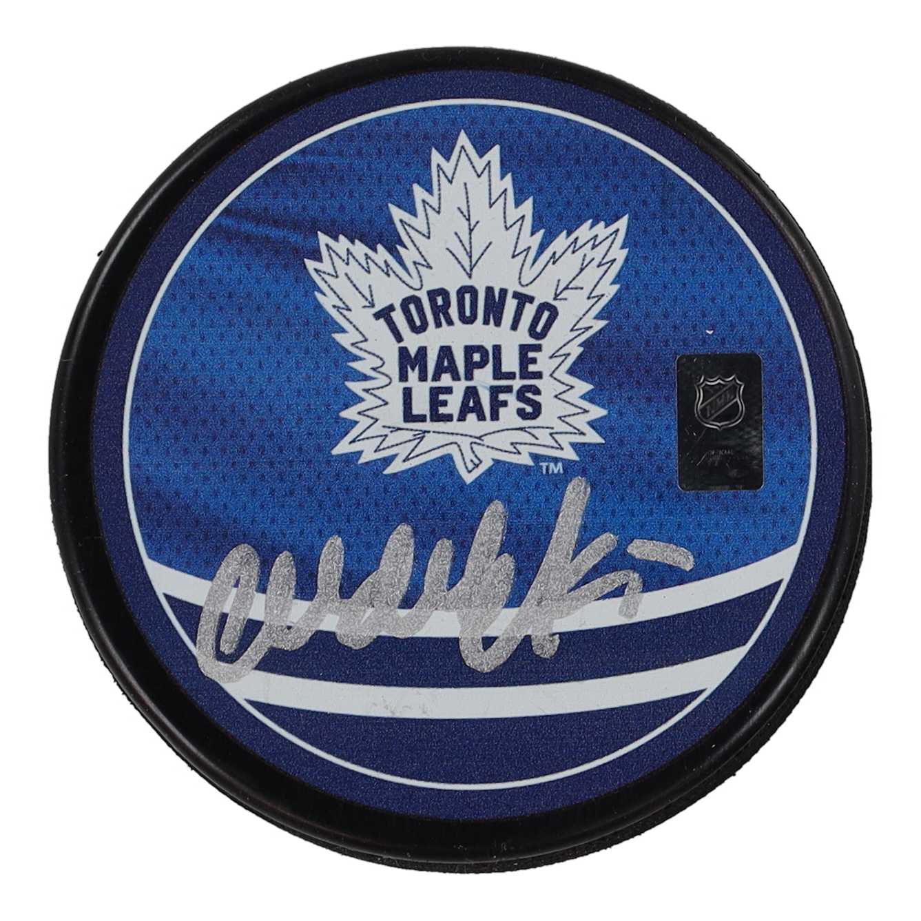 Toronto Maple Leafs logo hockey puck has been hand-signed by Wendel Clark.
