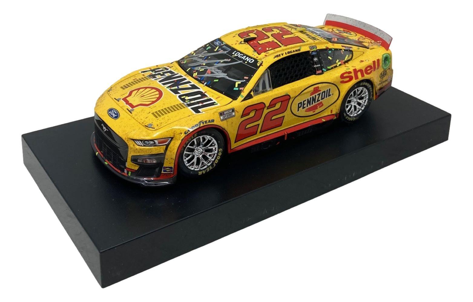 Premium die-cast car hand-signed on the windshield by Joey Logano. The car is limited edition to just 1,176 produced and includes the original packaging.