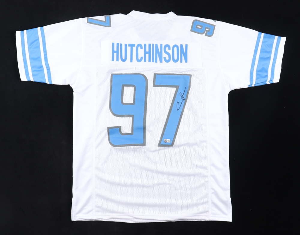 Custom jersey with everything sewn on, size XL. Hand-signed by Aidan Hutchinson.