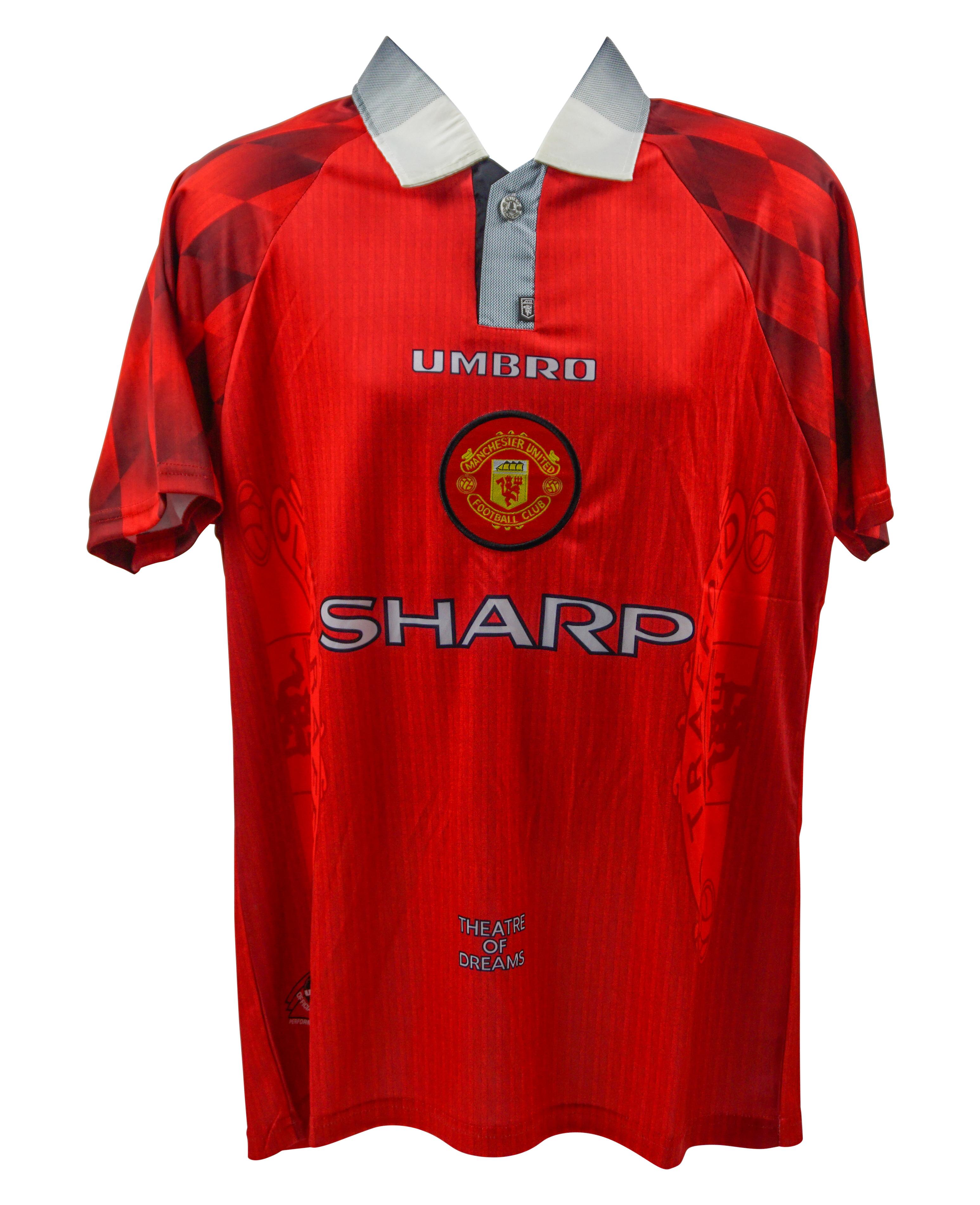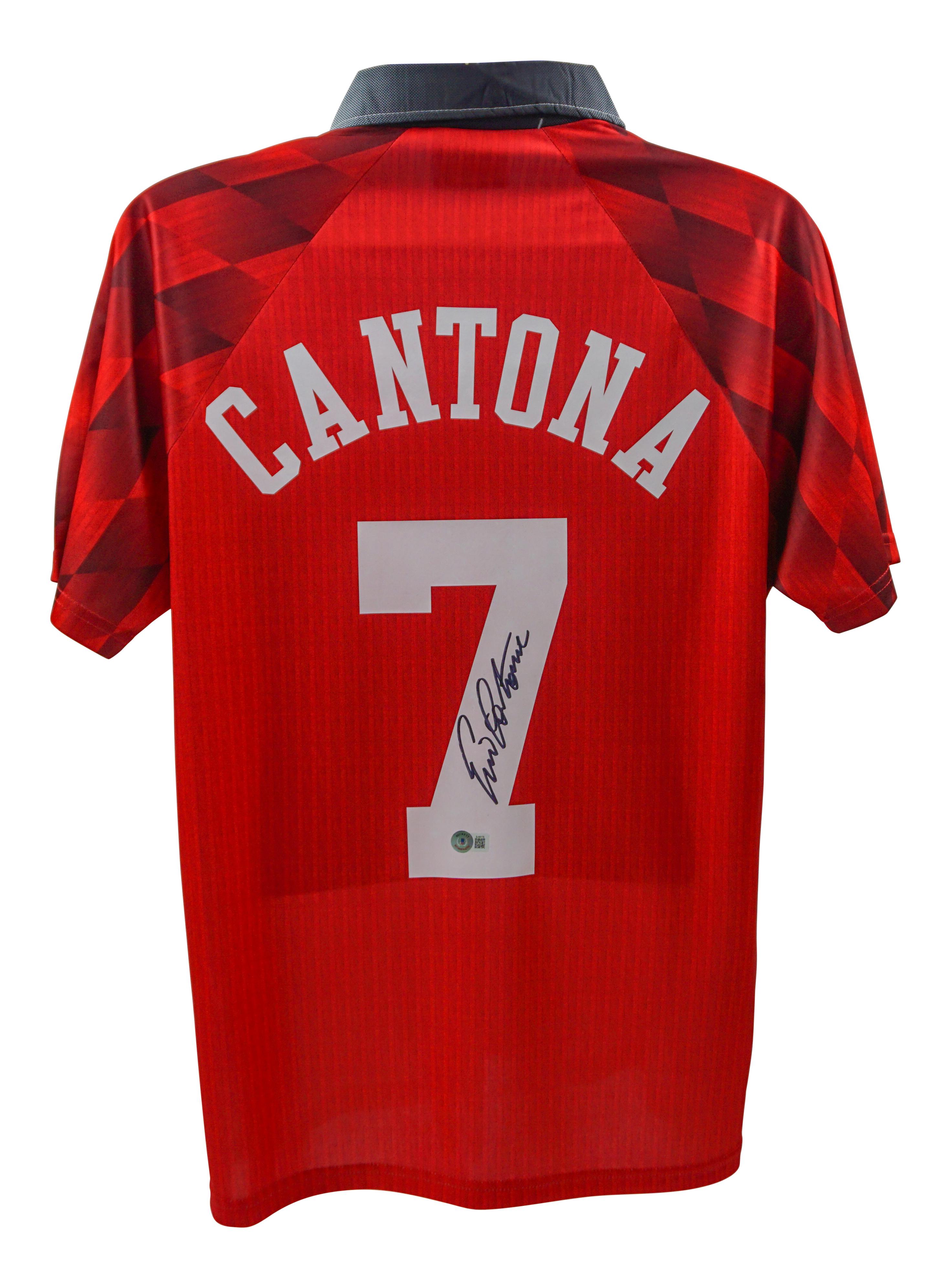 Nike style jersey with everything pressed on, size L. Hand-signed by Eric Cantona.