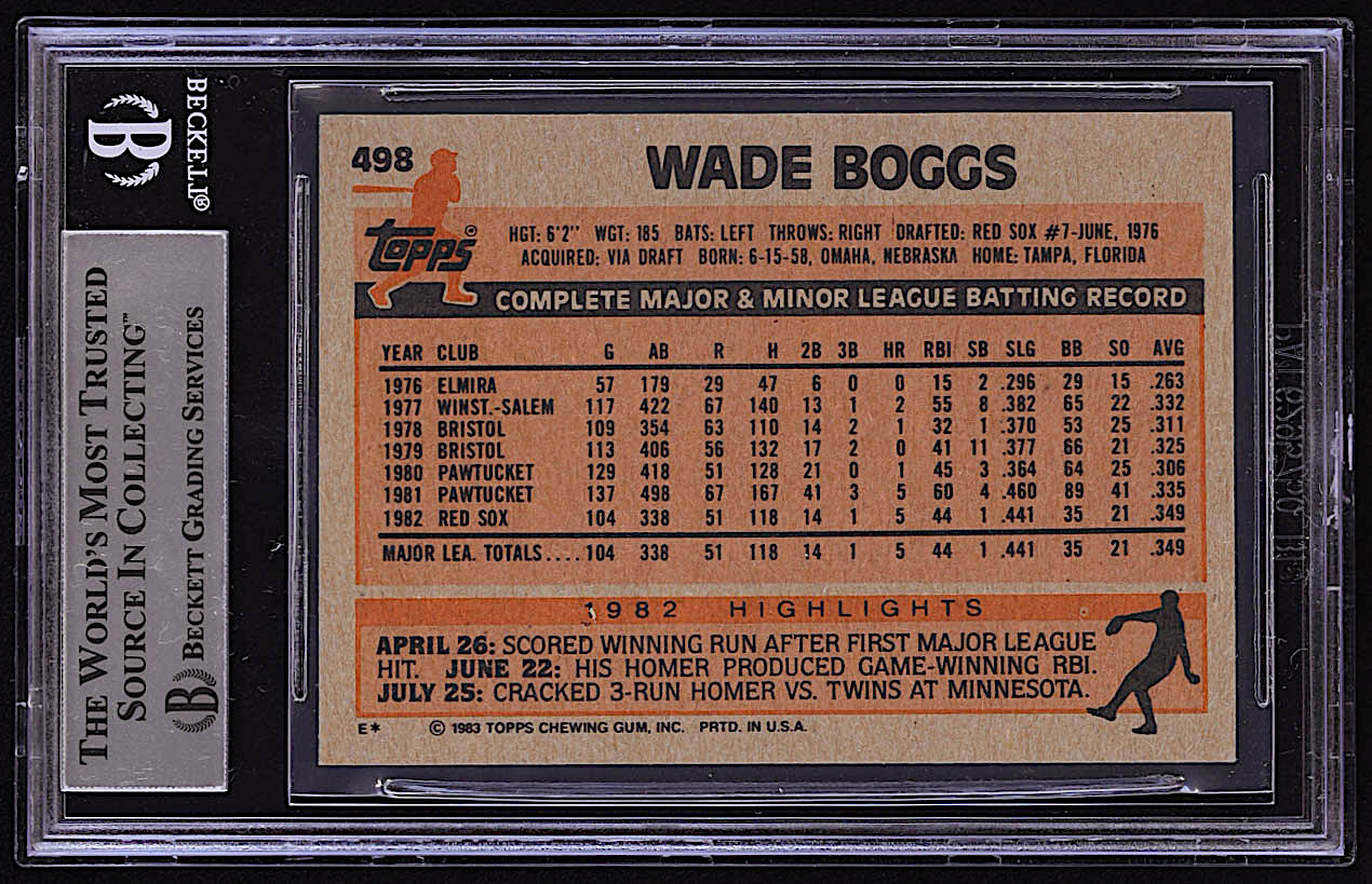 Wade Boggs Signed 1983 Topps #498 RC (BGS)
