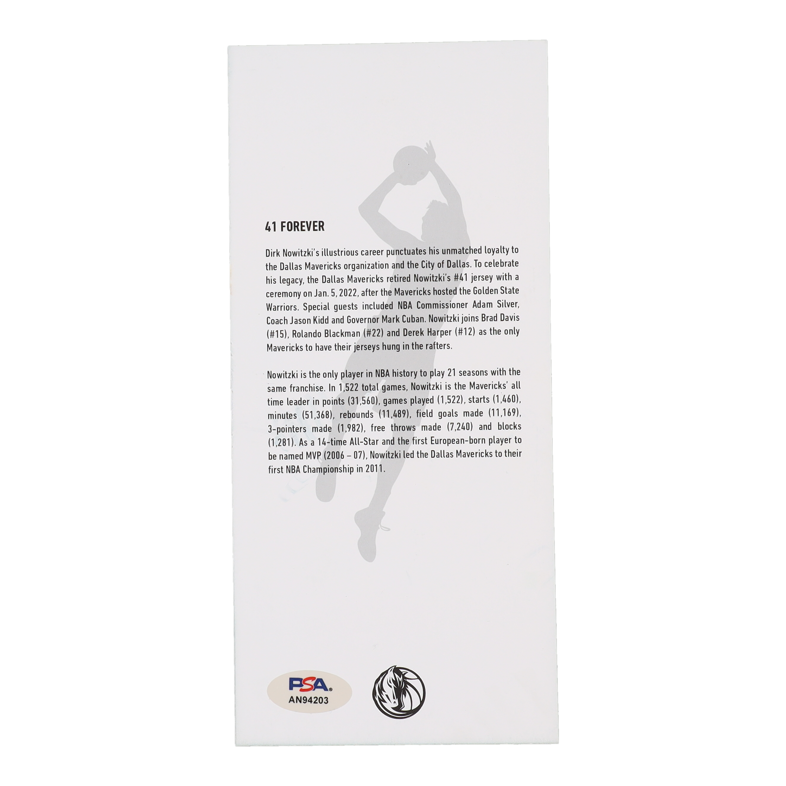 Dirk Nowitzki Signed 2022 Dirk Nowitzki Jersey Retirement Ceremony Commemorative Ticket (PSA)