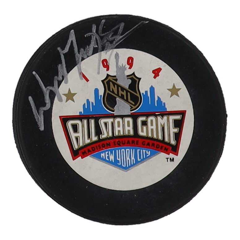 1994 NHL All-Star Game logo hockey puck has been hand-signed by Wayne Gretzky (Los Angeles Kings, HOF).