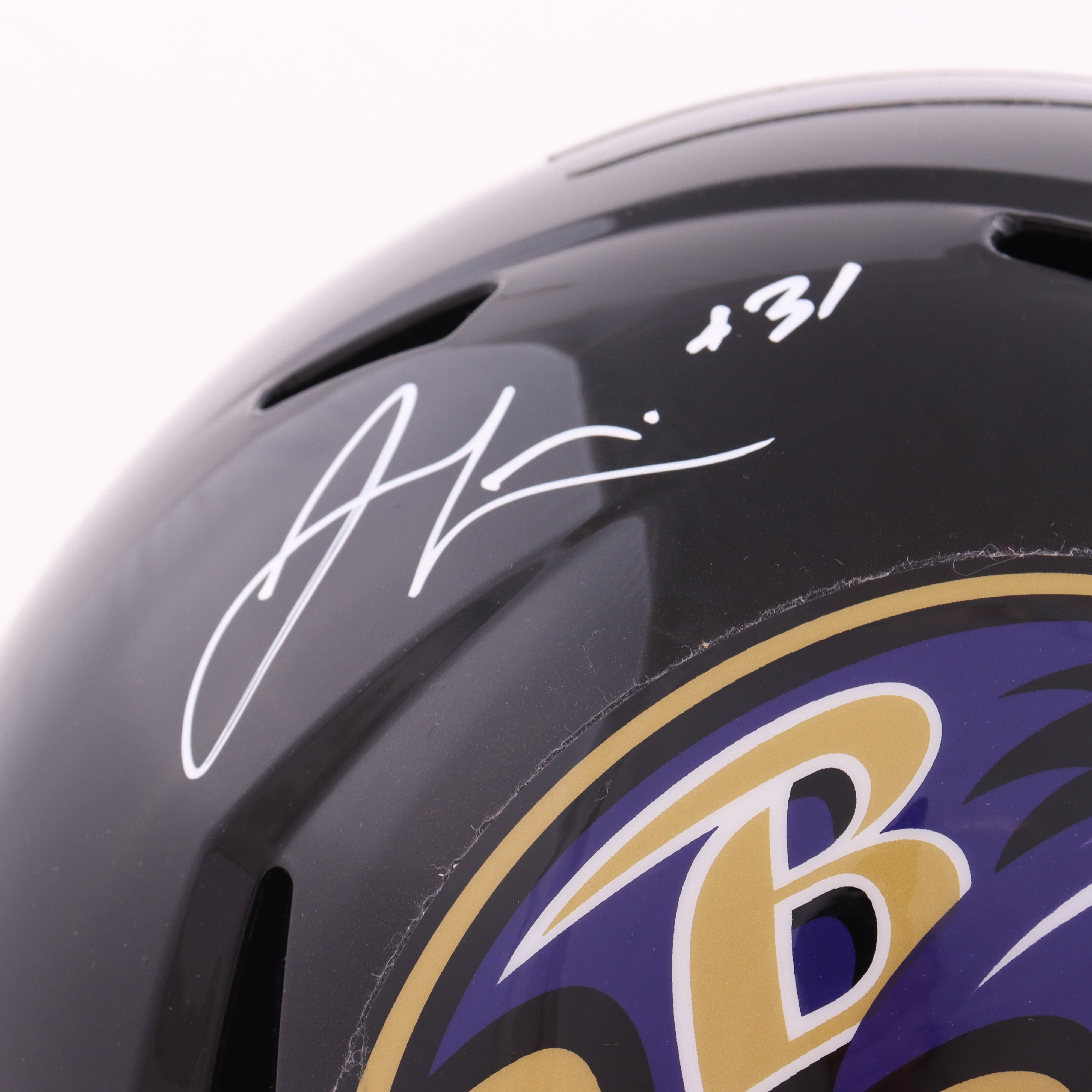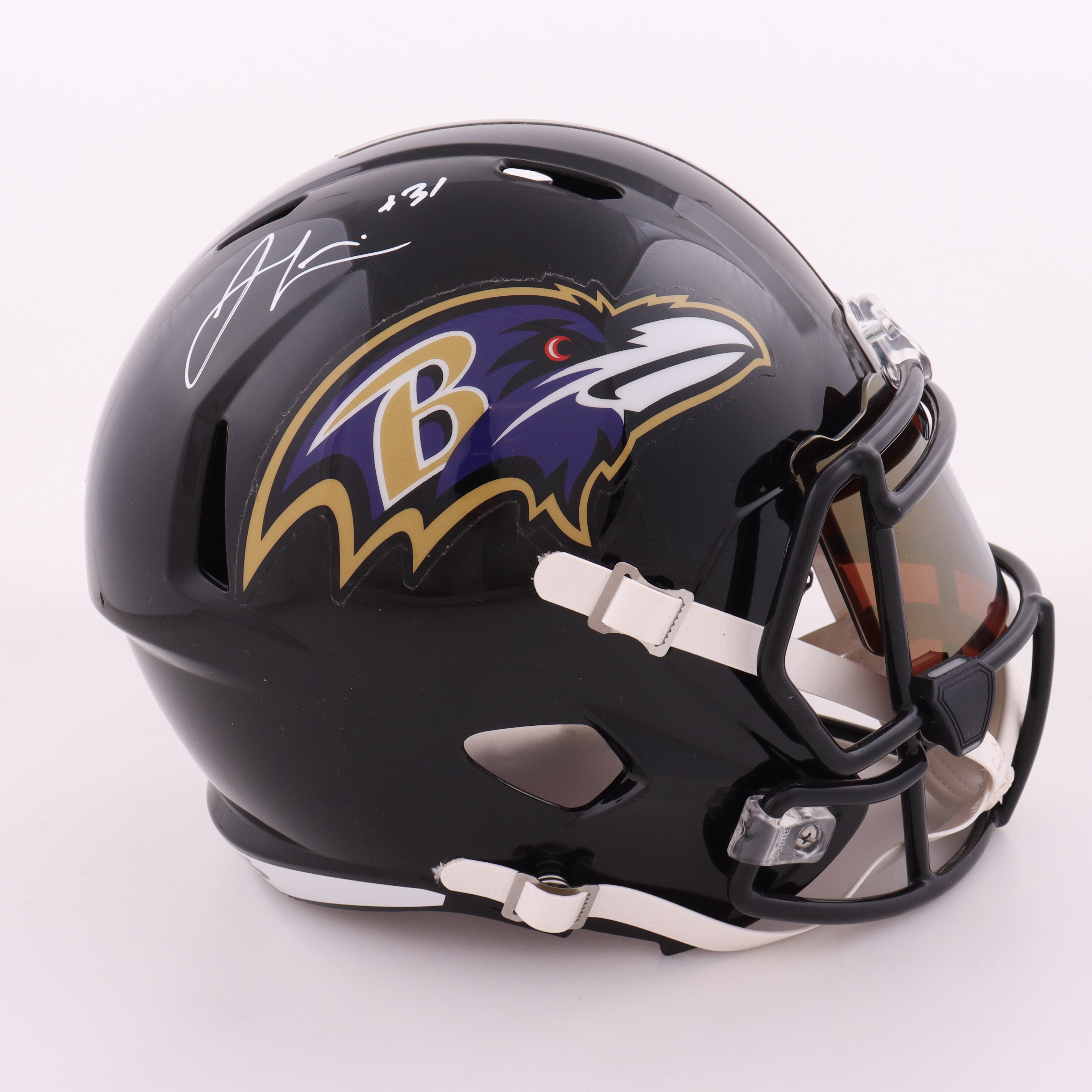 Riddell Baltimore Ravens full-size replica Speed helmet with custom visor. Hand-signed by Jamal Lewis.