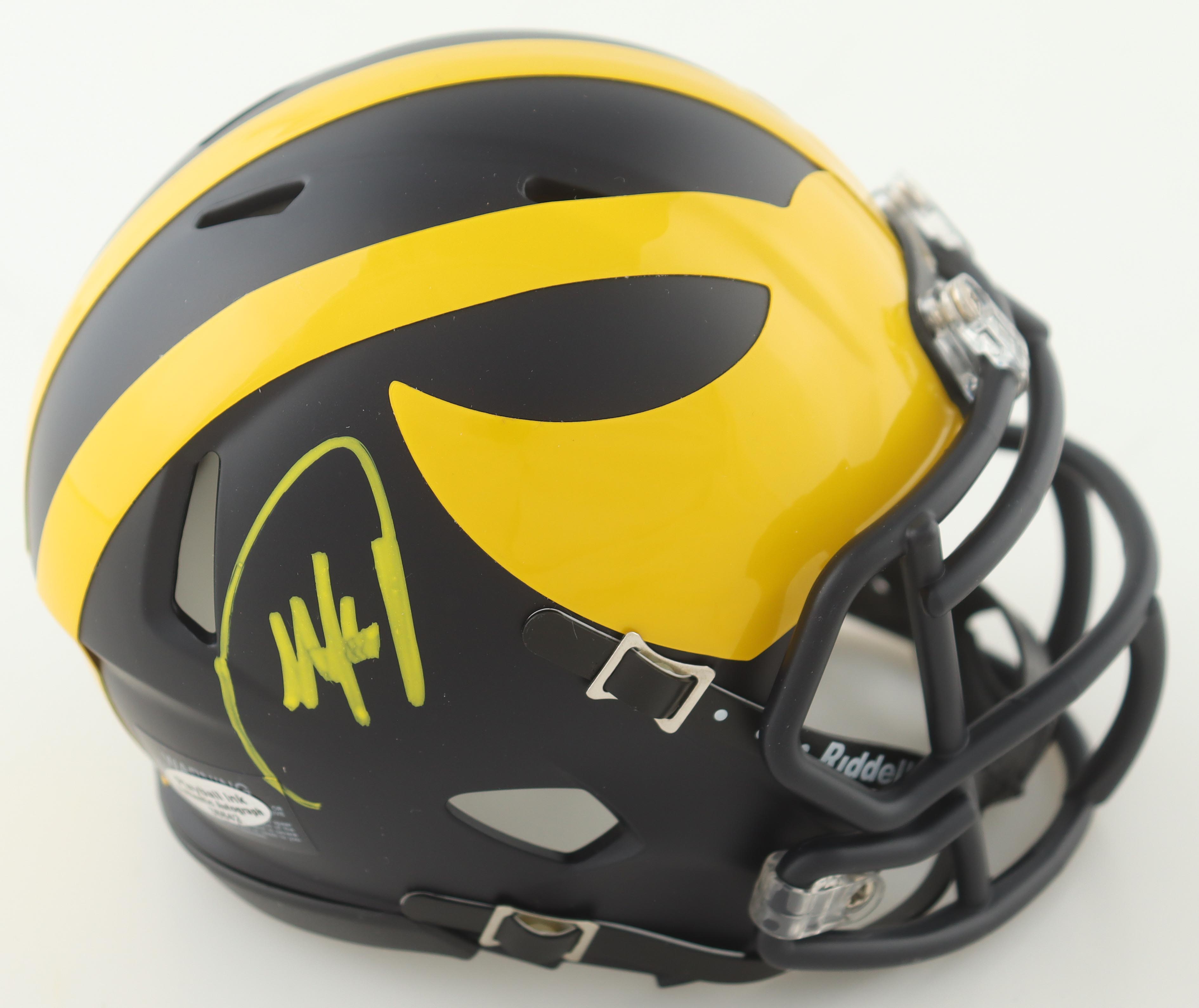 Riddell Michigan Wolverines Speed mini helmet. Hand-signed by Mike Sainristil.
