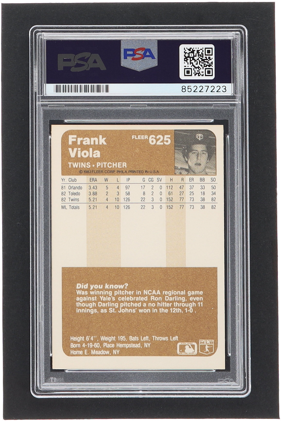 Frank Viola Signed 1983 Fleer #625 RC (PSA)