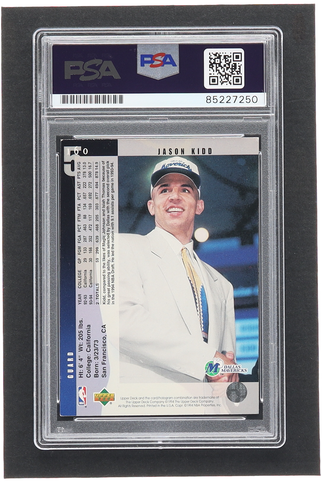 Jason Kidd Signed 1994-95 Upper Deck #160 RC (PSA)