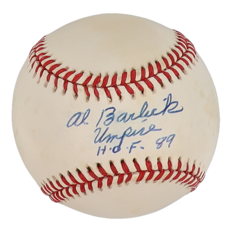 Al Barlick Signed ONL Baseball Inscribed "Umpire" & "H.O.F. 89" (JSA)