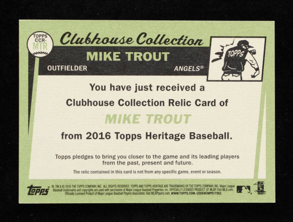 Mike Trout 2016 Topps Heritage Clubhouse Collection Relics #CCRMTR
