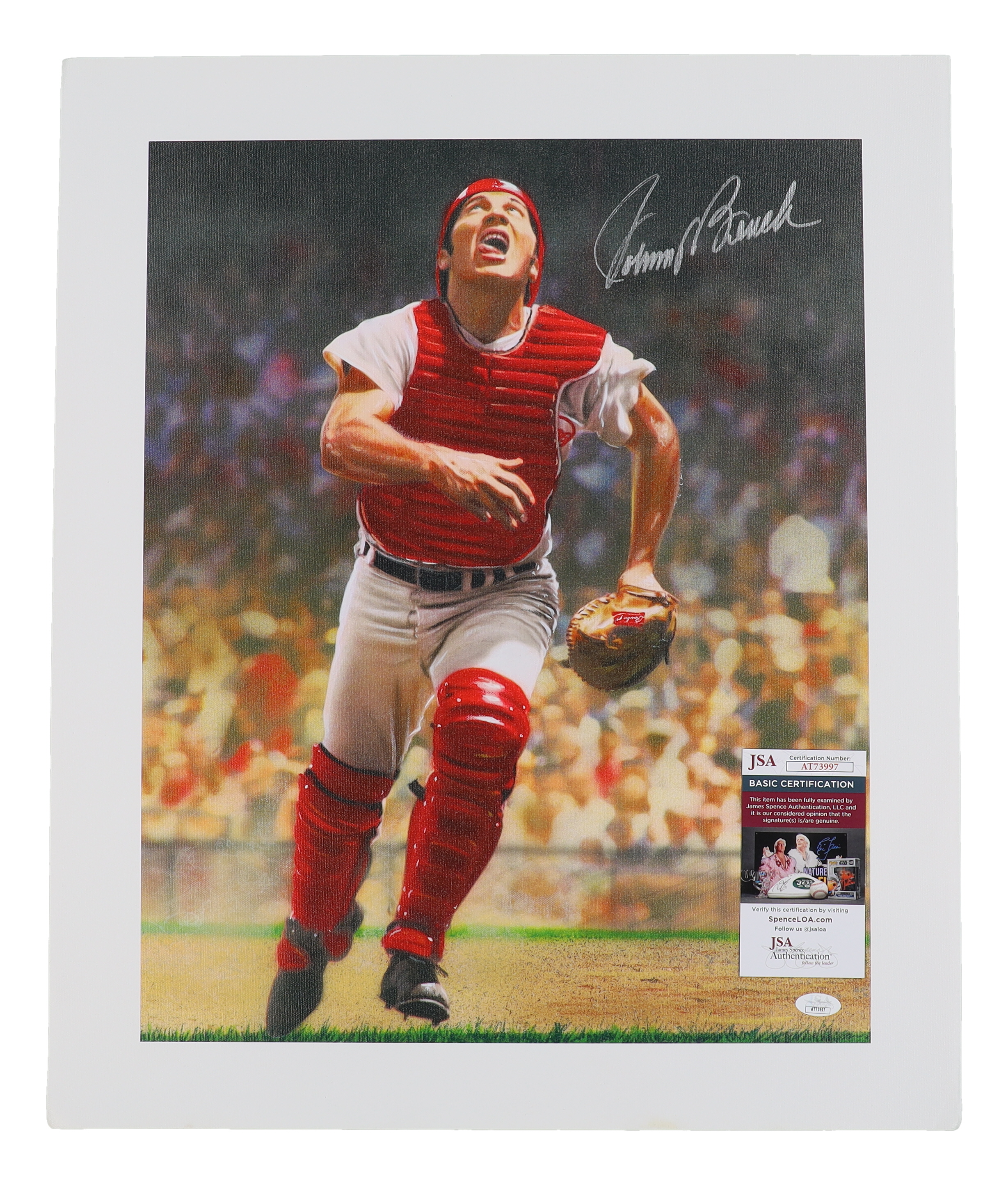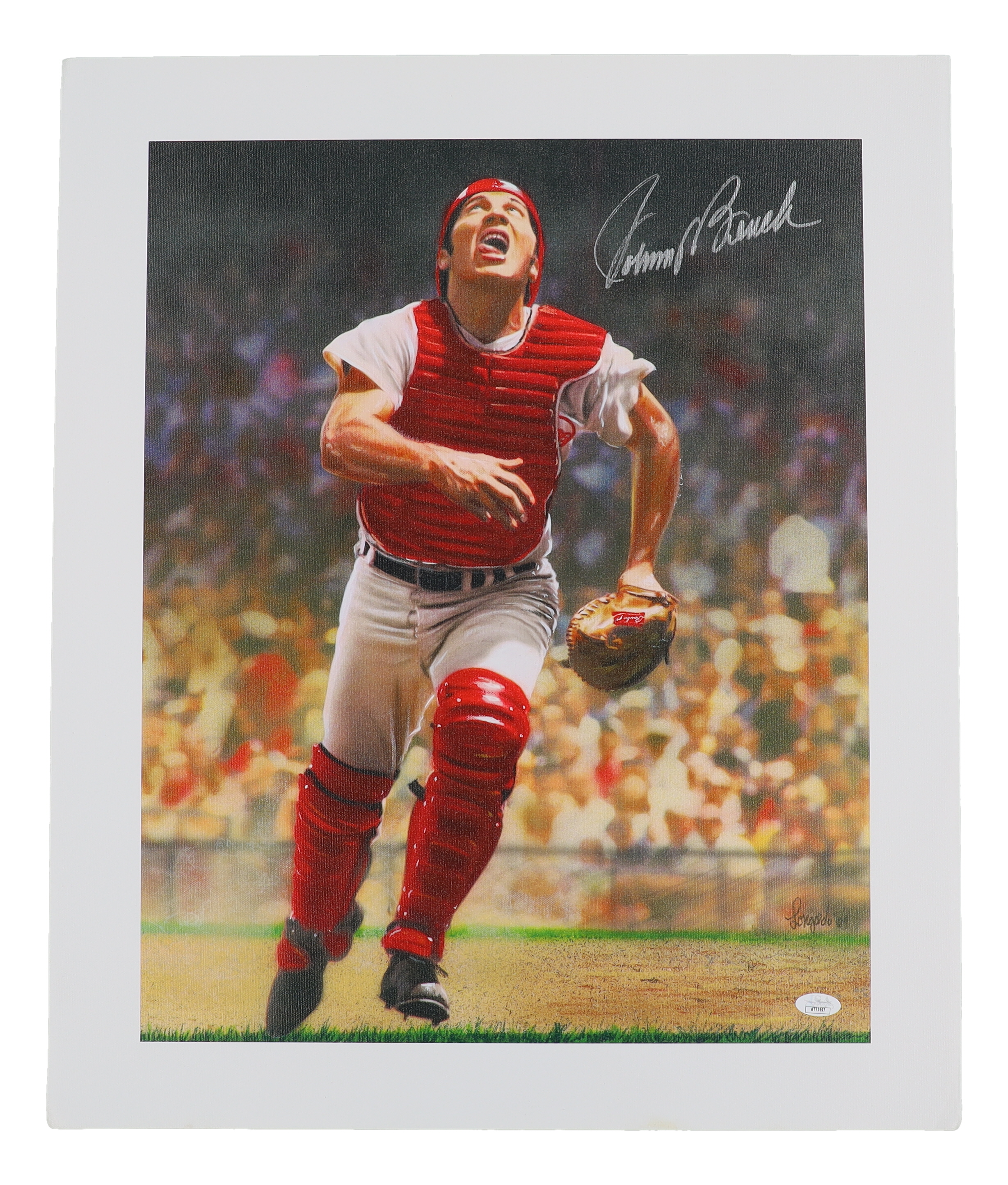 Johnny Bench Signed Reds Lithograph on Canvas (JSA)