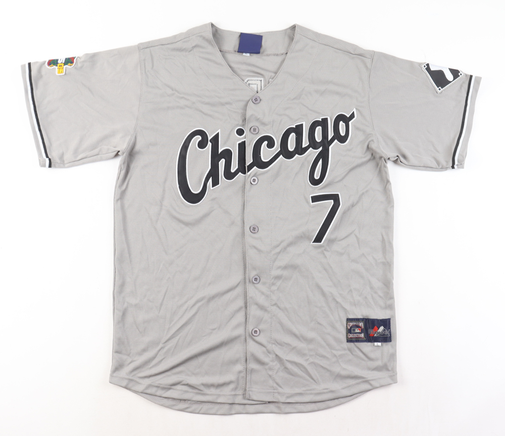 Majestic jersey with everything sewn on, size L. Hand-signed and inscribed by Timo Perez.