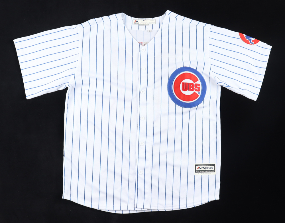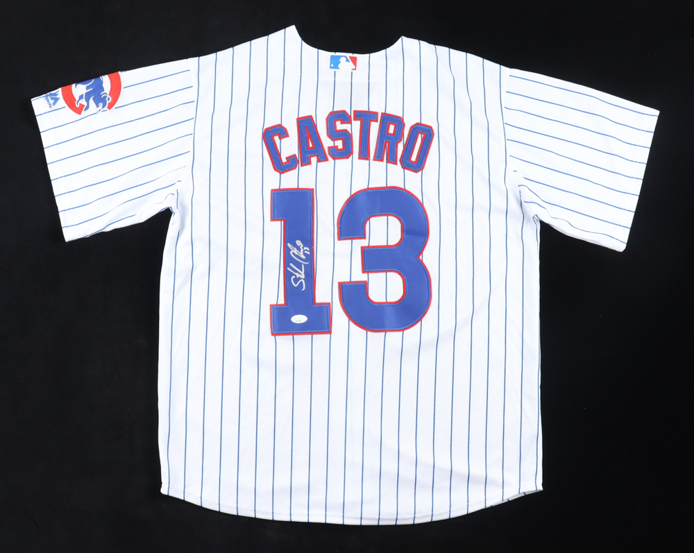 Majestic jersey with everything sewn on, size XL. Hand-signed by Starlin Castro Please note, there is a stain on the left shoulder.