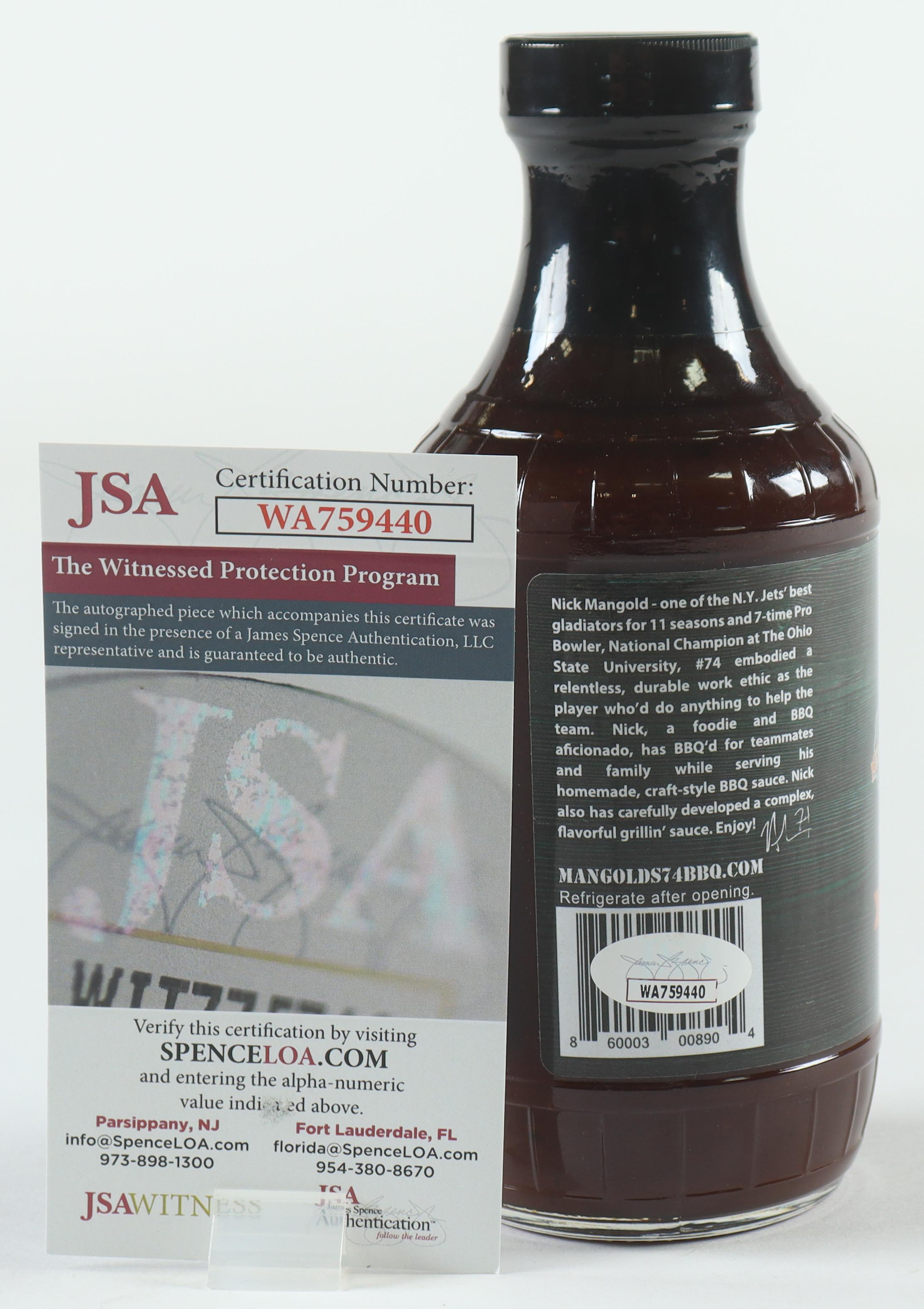 Nick Mangold Signed Mangold's 74 BBQ Sauce Bottle (JSA)
