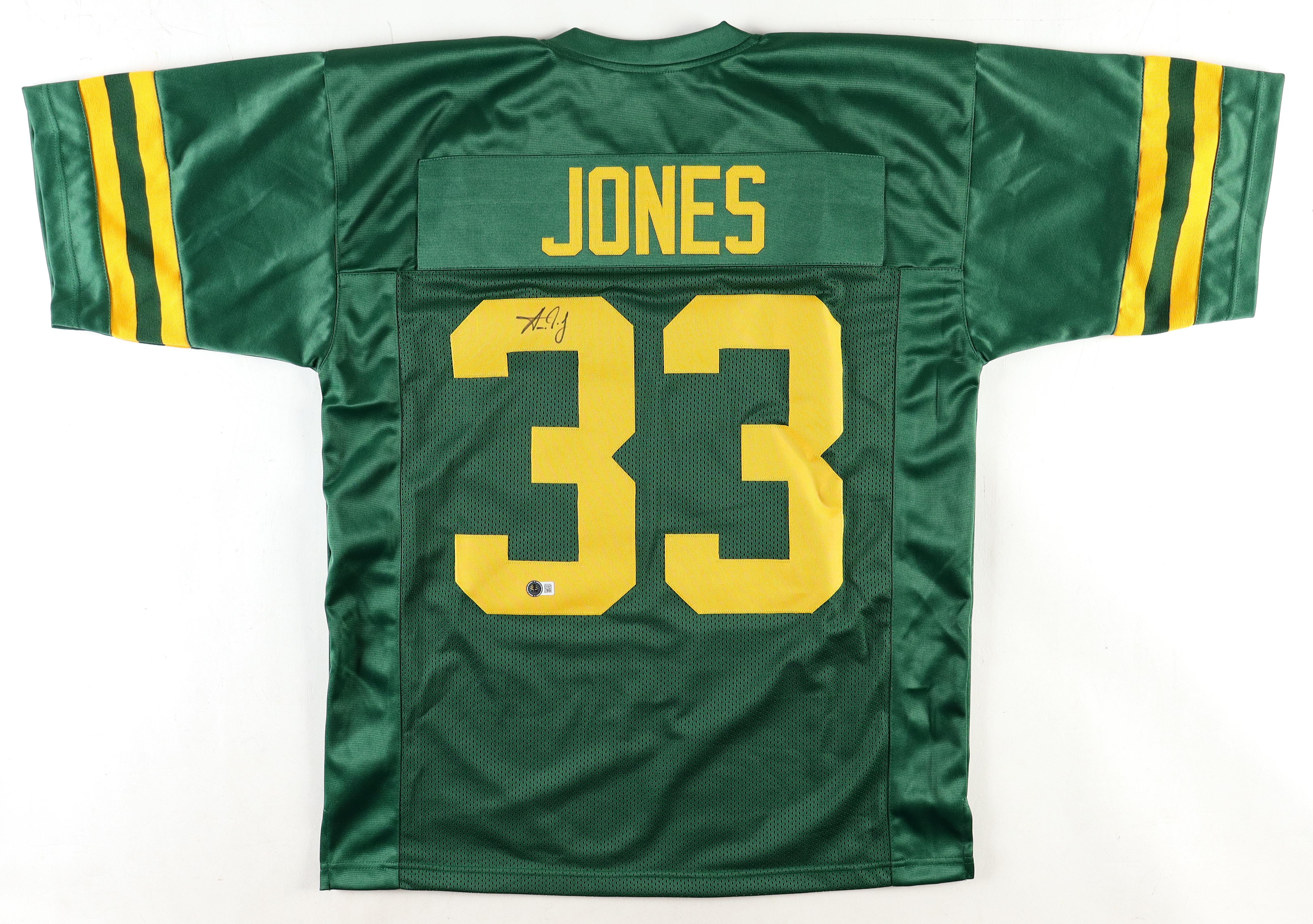 Custom jersey. Everything is sewn on, size L. Hand-signed by Aaron Jones.