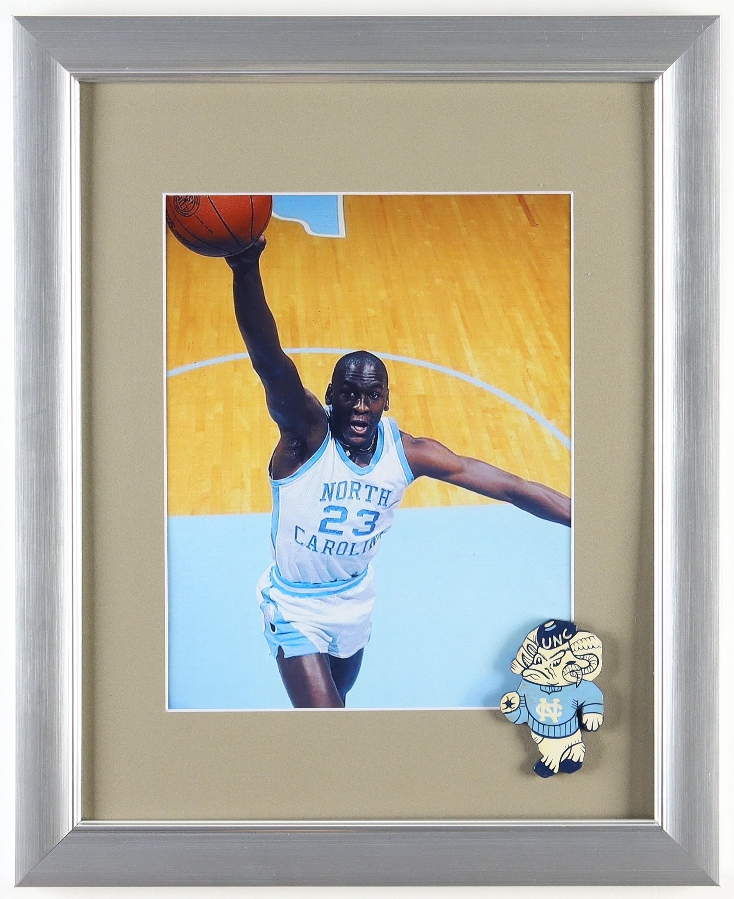 Michael Jordan North Carolina Tar Heels Custom Framed Photo Display with Ceramic Team Logo Pin