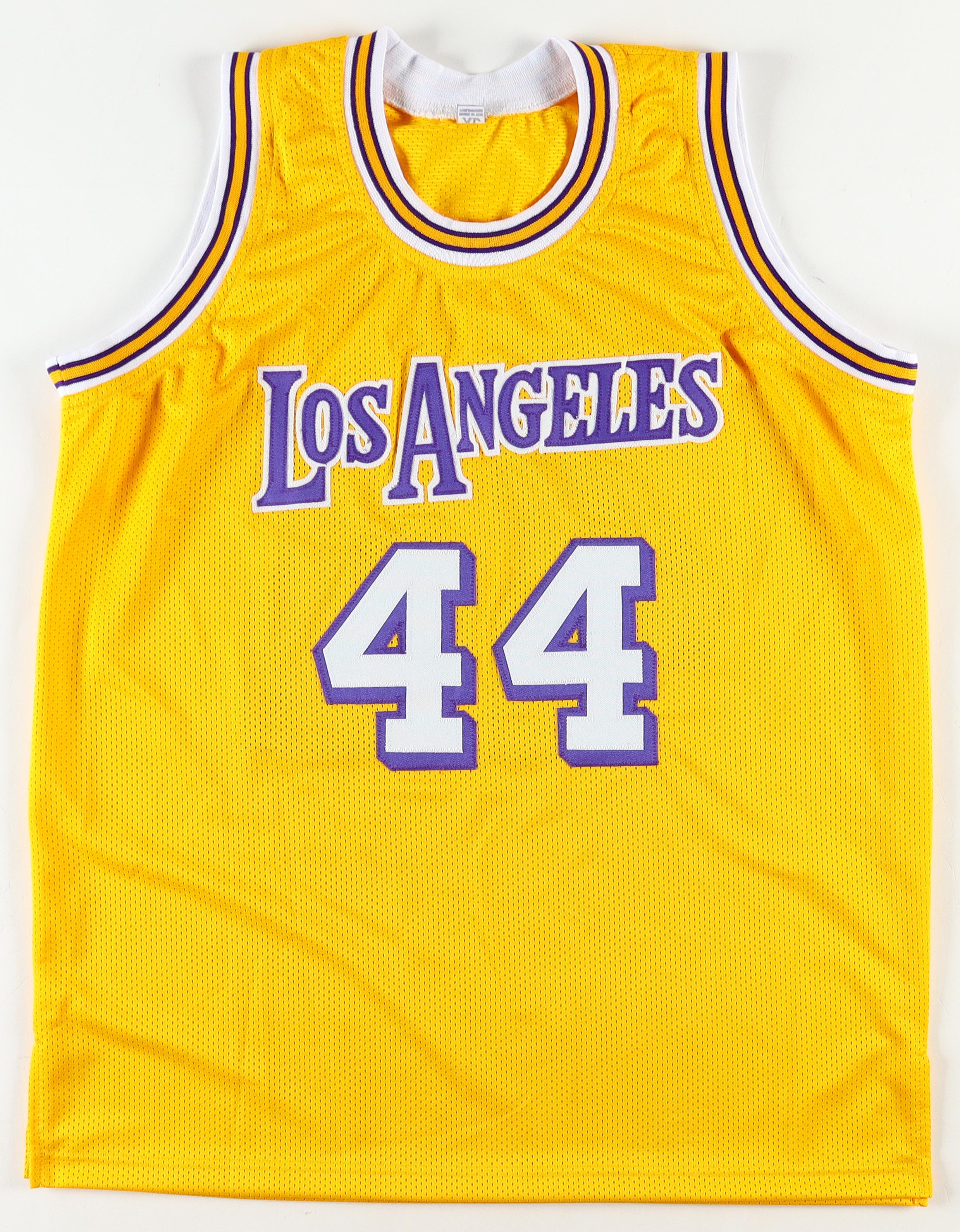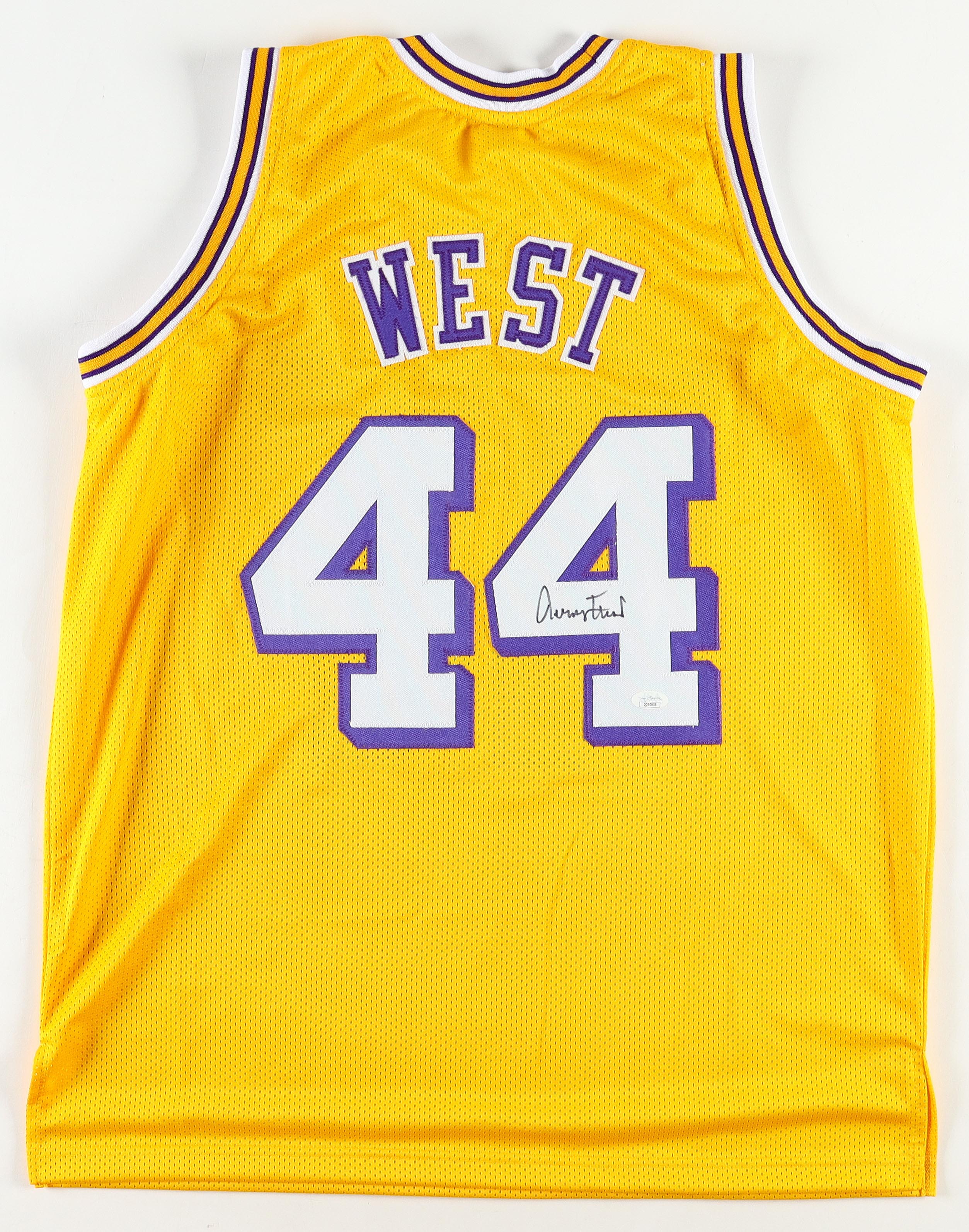 Custom basketball jersey. Everything sewn on, size XL. Hand-signed by Jerry West (HOF).