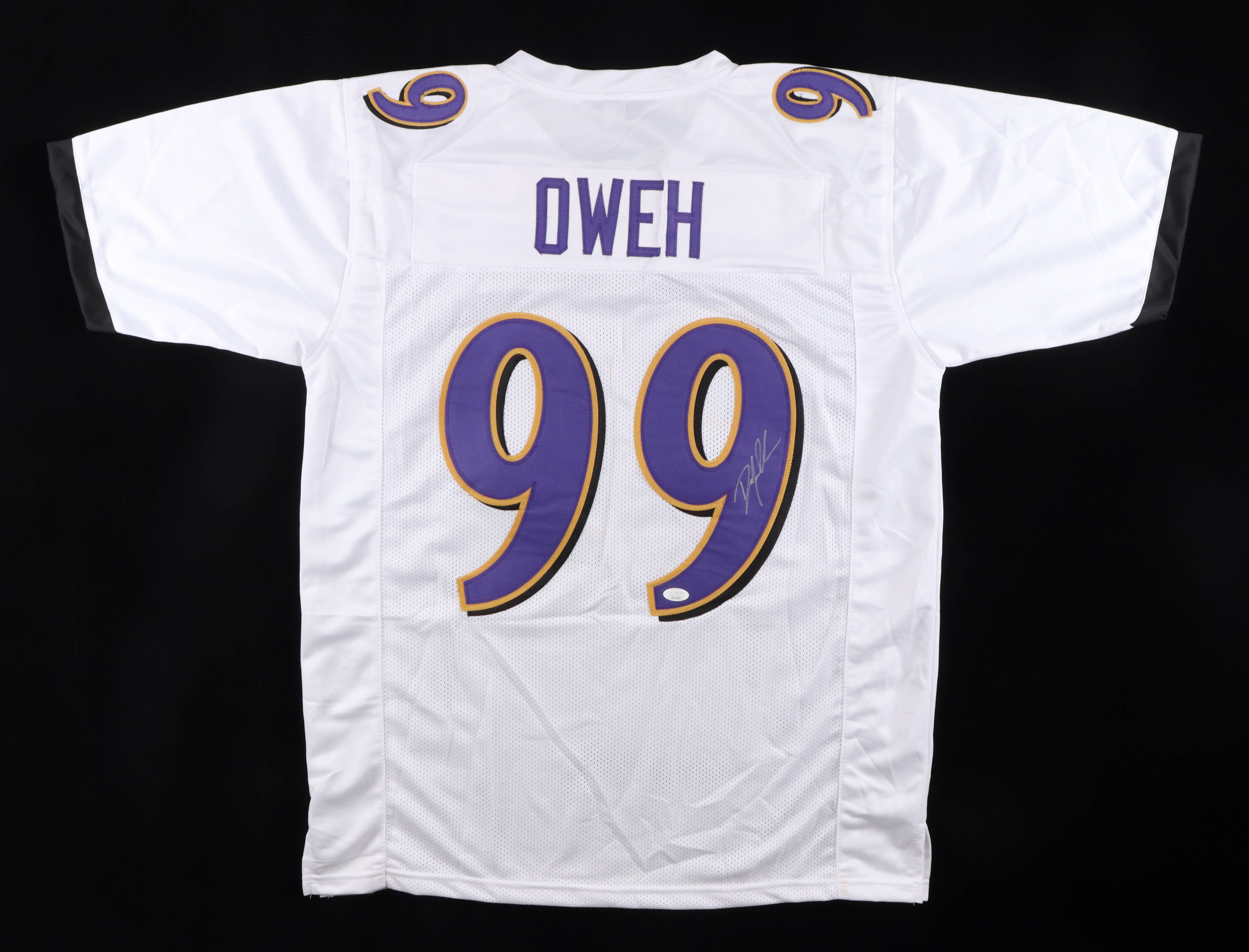 Custom jersey with everything sewn on, size XL. Hand-signed by Odafe Oweh.