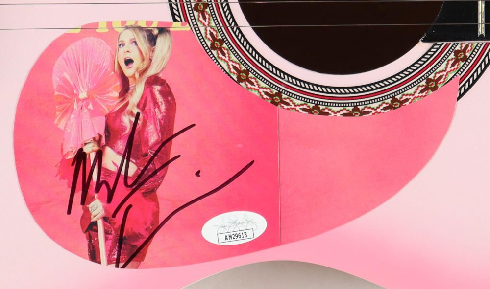 Acoustic guitar measures approximately 39" in length and has been hand-signed on the pickguard by Meghan Trainor.