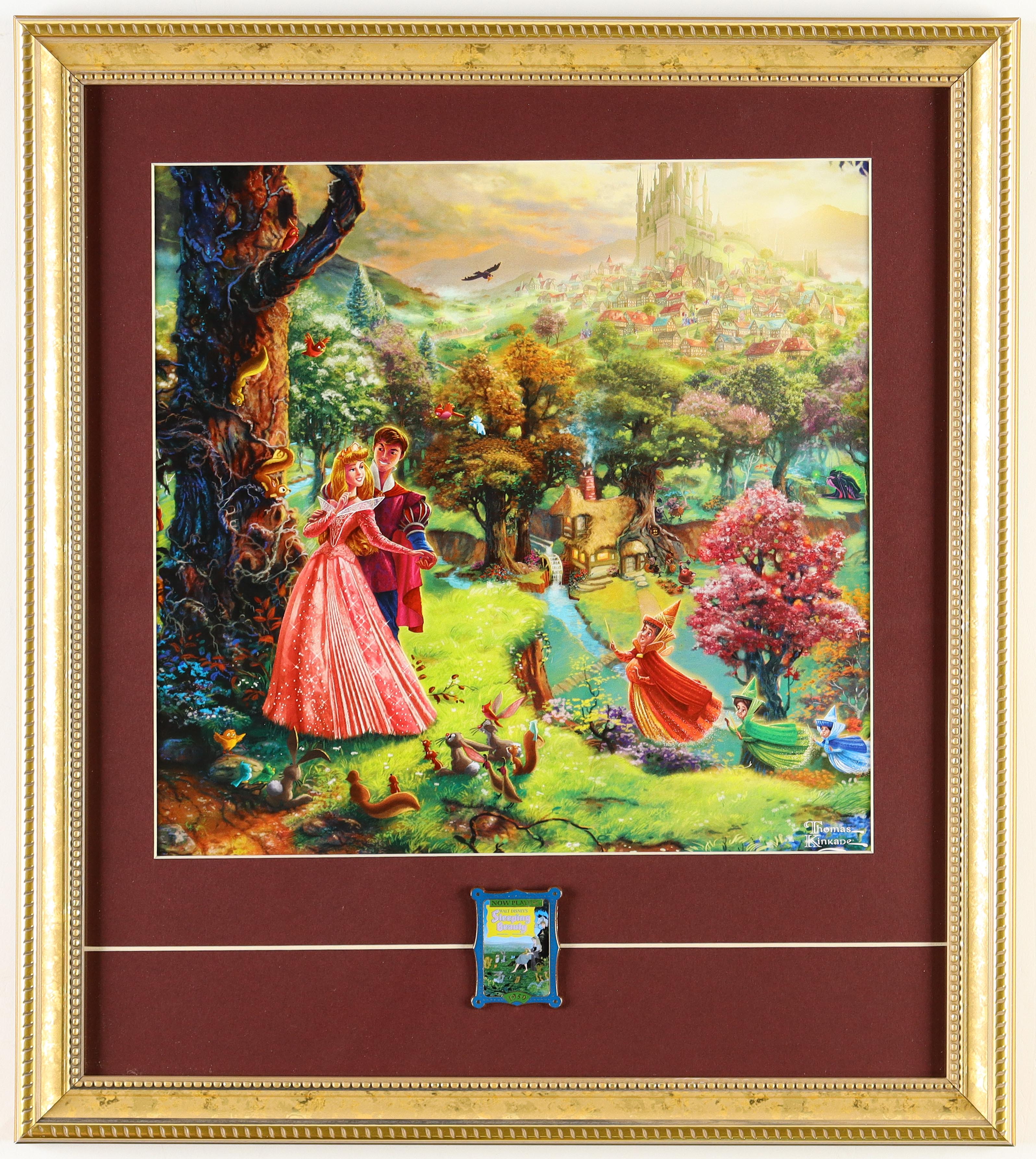 Thomas Kinkade Walt Disney's "Sleeping Beauty" Custom Framed Print Display with LE Retired Movie Poster Frame Pin