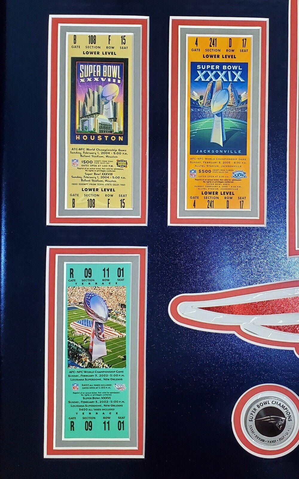 - Includes (6) replica Super Bowl tickets Commemorating each of Tom Bradys Super Bowl wins while with New England.