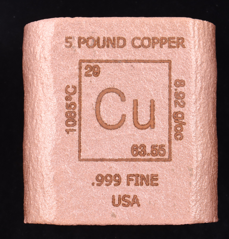 5 Pounds .999 Fine Copper Periodic Table Design Bullion Bar